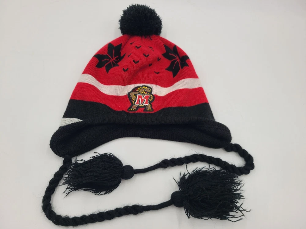Maryland Terrapins Terps Ear Flaps Tassels Beanie Winter Knit Hat Stocking Cap. EACH ADDITIONAL HAT PURCHASED IS ONLY $1 ADDED SHIPPING!