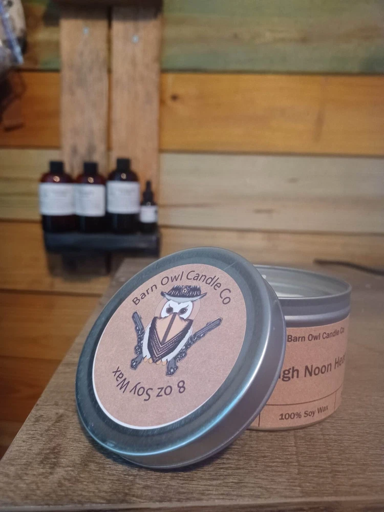 Masculine Western Candle Collection: Masculine candle with notes of teakwood, salt, and dark musk we use soy wax beads from soybeans grown in America’s Midwest. Our wax is sustainable, renewable and ethically produced. No color is added, this is the natural color of the wax. Please note that the natural color may vary from batch to batch depending on environment and scent used. 8 oz Metal Tin Soy Wax Lead Free Wick WE SHIP SUPER FAST "Making candles for a purpose, one cancer patient at a time" We created Barn Owl Candle Co in memory of my mom who dealt with breast cancer and leukemia cancer. With every purchase of a candle, we donate to Moffitt Hospital in Tampa, FL to suppose cancer patients and research. Barnowlcandleco.com for our full story <3