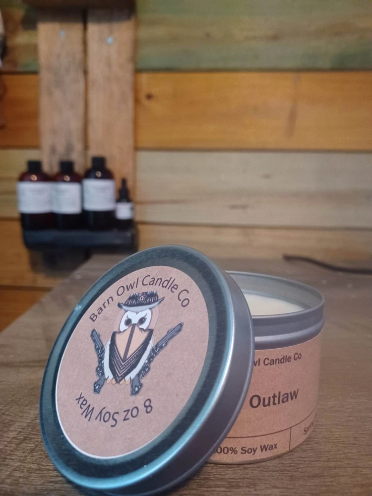 Western Collection: Notes of leather, whiskey, warm amber, & smoked oud we use soy wax beads from soybeans grown in America’s Midwest. Our wax is sustainable, renewable and ethically produced. No color is added, this is the natural color of the wax. Please note that the natural color may vary from batch to batch depending on environment and scent used. 8 oz Metal Tin Soy Wax Lead Free Wick WE SHIP SUPER FAST "Making candles for a purpose, one cancer patient at a time" We created Barn Owl Candle Co in memory of my mom who dealt with breast cancer and leukemia cancer. With every purchase of a candle, we donate to Moffitt Hospital in Tampa, FL to suppose cancer patients and research. Barnowlcandleco.com for our full story <3