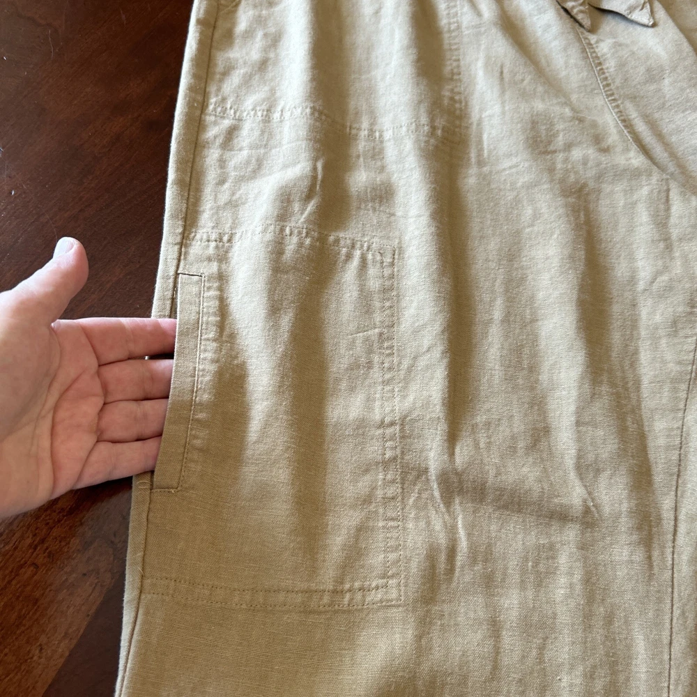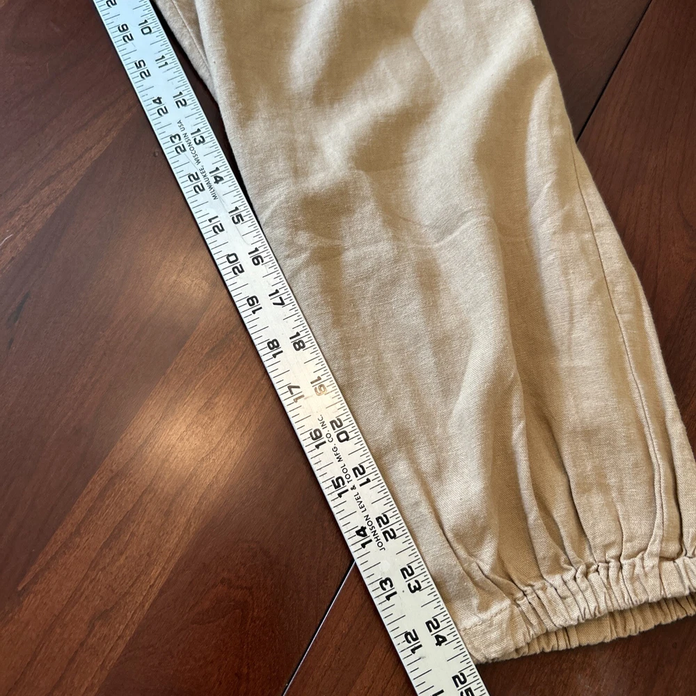 Mason & Belle Womens Joggers XXL Tan Tie Waist Belted Utility Linen Blend Elevate your casual wardrobe with these stylish Mason & Belle women's joggers. Crafted from a linen blend fabric, these pants feature a tie waist belted closure, elastic hem, and deep cargo style front pockets for a comfortable and relaxed fit. The jogger design and flat front create a flattering silhouette, perfect for any occasion from travel to parties or just running errands. These pants are available in size 2XL and come in a trendy brown color that is perfect for summer, fall, or spring. Fit- XXL fits around a size 16. Bohemian, Summer, Island, Vacation, Beach, Lightweight, Breathable, Coastal