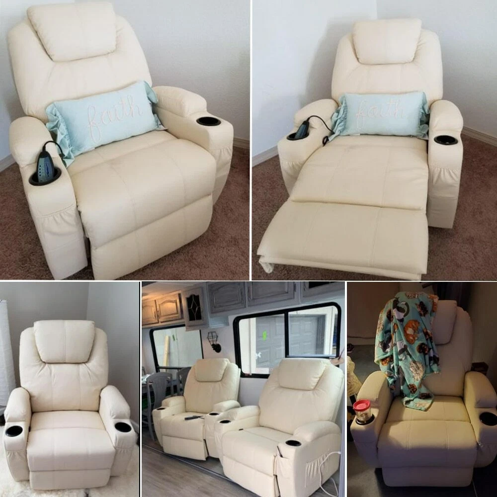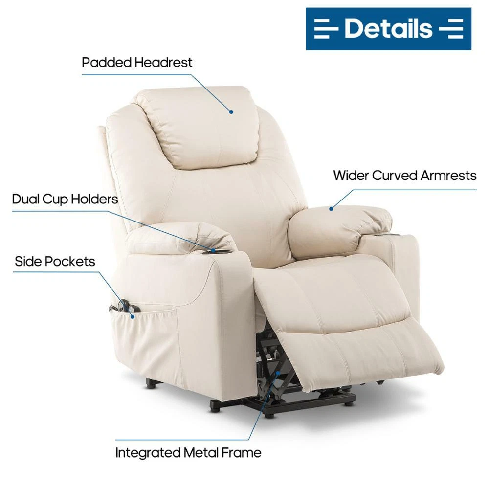 Massage Recliner Chair Heated Vibratory Rocker PU Leather Ergonomic 30 in 1 free DESCRIPTION: If you are looking for a power lift chair to go in your living room, bedroom, home theater or even your office, this is the best choice ! Lift mechanism pushes the chair up, help the senior stand up easily.6 points massage system, 5 vibration massage modes, 2 level vibration intensity, it is ideal for anxiety and tiredness relief, softly padded cushion and backrest, offer extra comfort, especially suitable for those working for long sessions.Conforming to ergonomic principle, the massage recliner chair supports your neck, arm, back, and legs in the correct angle so as to offer utmost comfort. Retractable footrest & push-back backrest, perfect for reading, watching TV or napping. FEATUERES: [Power Lift Recliner] Counter-balanced lift mechanism with TUV certified motor pushes the entire chair up to assist the senior stand up easily without adding stress to back or knees, smoothly adjust to lift or reclining position you prefer by pressing two buttons. [Full Body Customized Massage] Electric recliner (including leg rest) features 6 vibrating points, 5 massage modes, 2 intensity levels , improve blood circulation for your head, back, lumbar and legs. [Comfortable & Ergonomic] Soft upholstery, Overstuffed high-density sponge and simple lines sketched out the recliner, provide you superior comfort and aesthetics, with unexpected sense of the parcel. Dual side big pockets for magazines, remote and other small items, cup holders on both sides of armrests best meets your needs. [High Quality & Easy Care] With strong solid wood & Integrated Metal Frame construction, massage chair reclines up to 140 degree, max weight capacity is about 330lbs. High grade faux leather is durable and easy cleaning, no need for oils or waxes, just clean with a dry or damp lint-free cloth. [Unique Design] High-resiliency foam cushions in supple polyester and filled with high-density sponge which is soft and odor-free.Considerate side pocket,Side storage bag to hold your magazines and remote control in easy reach.Handy remote controls,All functions are controlled just by 1 controller for easy use, no need to operate manually. One is for the lift and another for reclining.Sturdy metal mechanism -- Strongest Frame Construction & Anti-Back-Tipping Design.The base is designed in anti-back-tipping, increase safety feature, underseat structure is made of durable metal to support body weight. SPECIFICATION: Main material: Faux leather, wood, metal, sponge Open dimensions: 53cm× 106cm × 90cm(L x W x H) Closed dimensions: 70cm × 74cm × 108cm (L x W x H) Seat dimensions: 49.5cm × 55cm (W×D) Back dimensions: 70cm × 70cm(W×H) Armrest thickness: 16cm Gross weight: about 56.5kg Weight capacity: 330lbs / 137kg Package Includes: 1 x Power Lift Chair 1 x Remote Control 1 x Power Plug 1 x Instruction Note: We divided 1 chair into 2 parcels due to the weight and size limitation. please be patient to wait for the second one after you get the first one! Shipping Policy · Item will be shipped out by Registered Sri Lankan Air Mail after the payment is cleared by PayPal. · All orders are shipped within 3-5 business days. · The arrival time depends on your location. This time may get longer due to special holidays and various clearances of custom department. Delivery time usually will be 20-35 days to most of countries. · All items will be checked carefully and packaged in good condition before dispatch the product. Payment Policy We accept PayPal Only Return / Replacement · We accept returns within 30 business days from item arrival · If you are not satisfied with the item or its condition, please contact us first. We will try to solve any dispute and try our best to make our customers fully satisfied