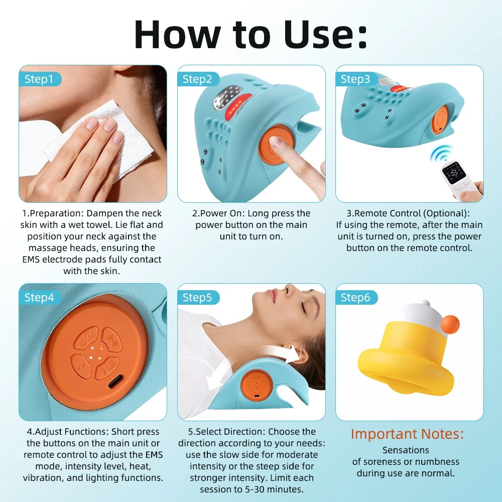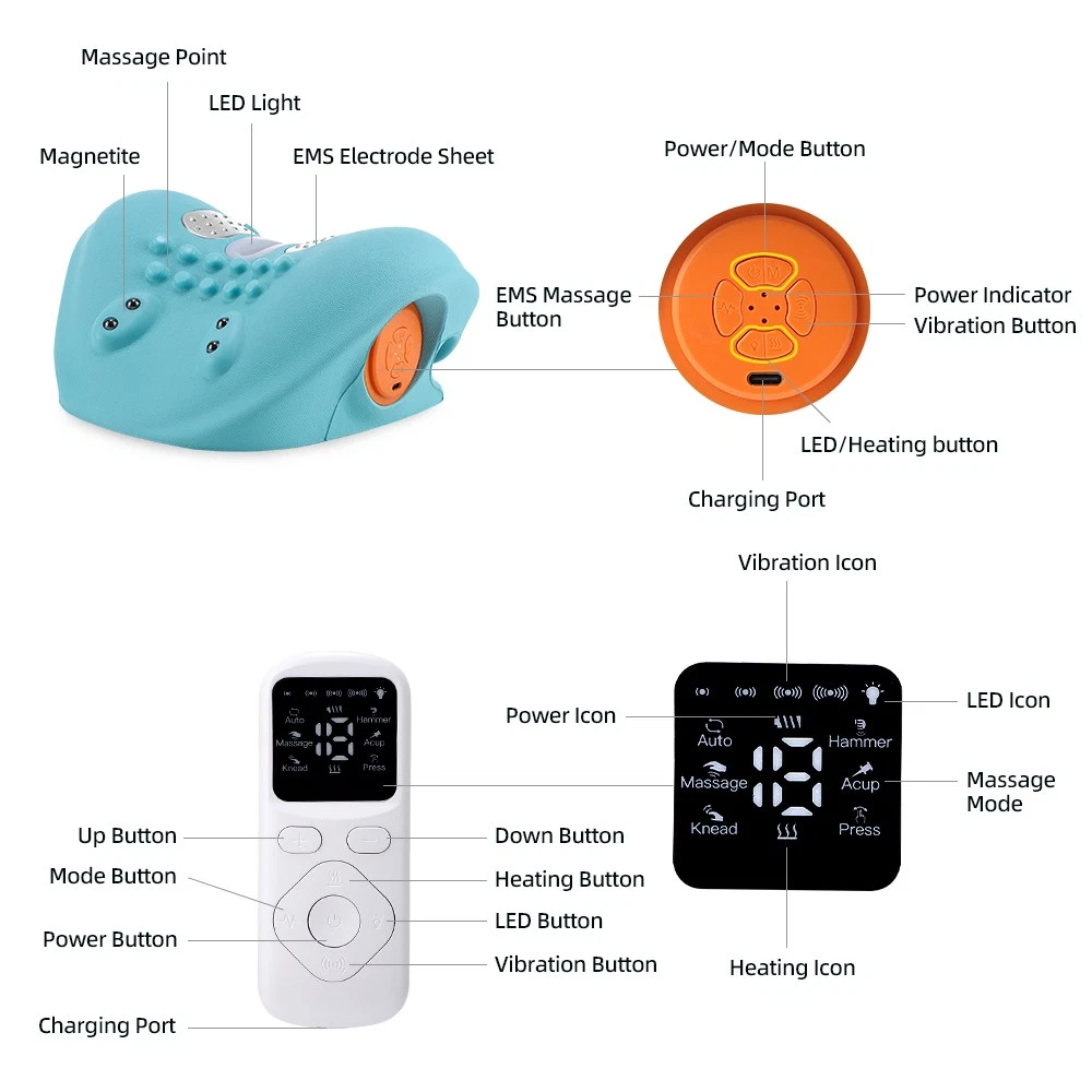 Massage Functions: Acupuncture, Kneading, Shiatsu, Tapping, Vibrating, Heated Manufacturer Warranty: 3 Years Power Source: USB Charging Custom Bundle: No EMS Massage levels: 6 levels Brand: Unbranded Material: ABS Typ: Wrap Around Neck Massager Features: Cordless, Rechargeable, Heated, Remote Control Endurance Time: 4 Hours Color: Blue gtin13: Does not apply Labels & Certifications: CE,FCC,ROHS Body Area: Neck, Shoulder Model: H1 Type: Cervical Massage Pillow UPC: Does not apply Voltage: 5V Country of Origin: China MPN: Does Not Apply Functions: EMS + Vibration + Red Light + Heat Therapy