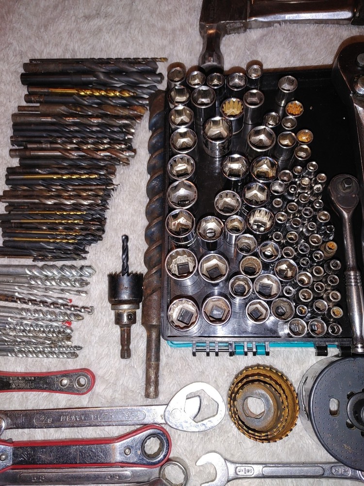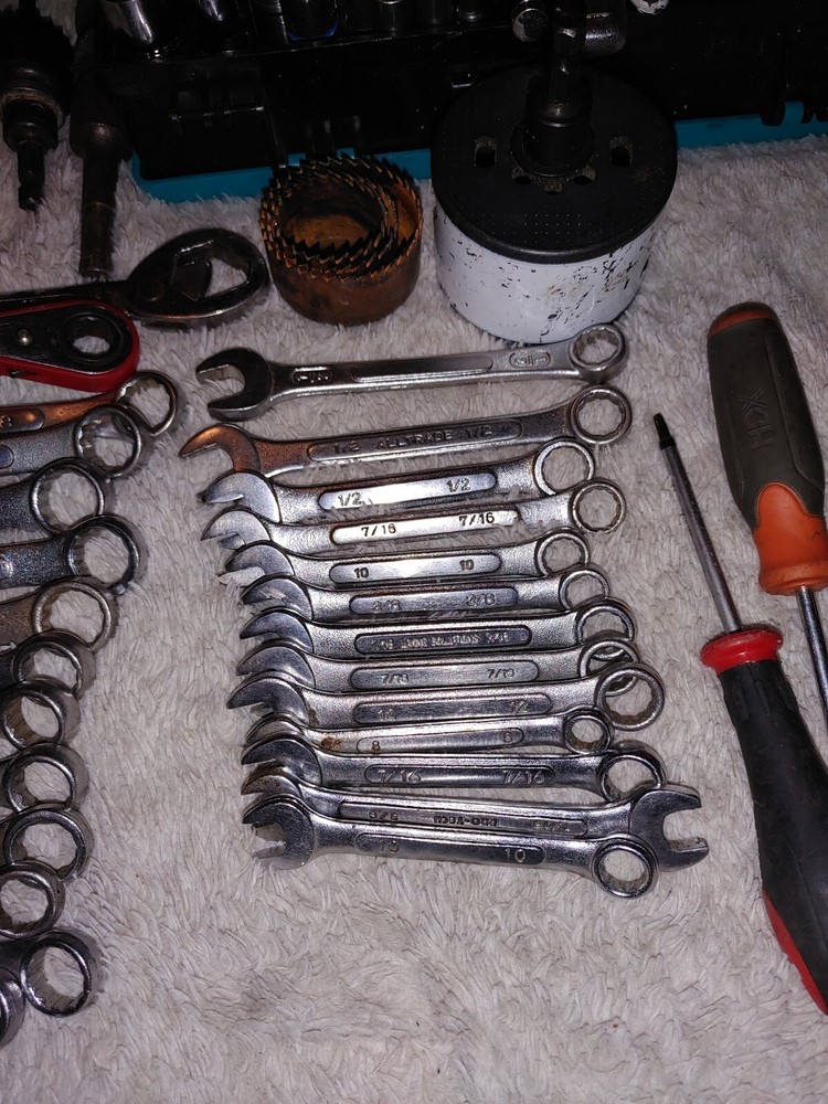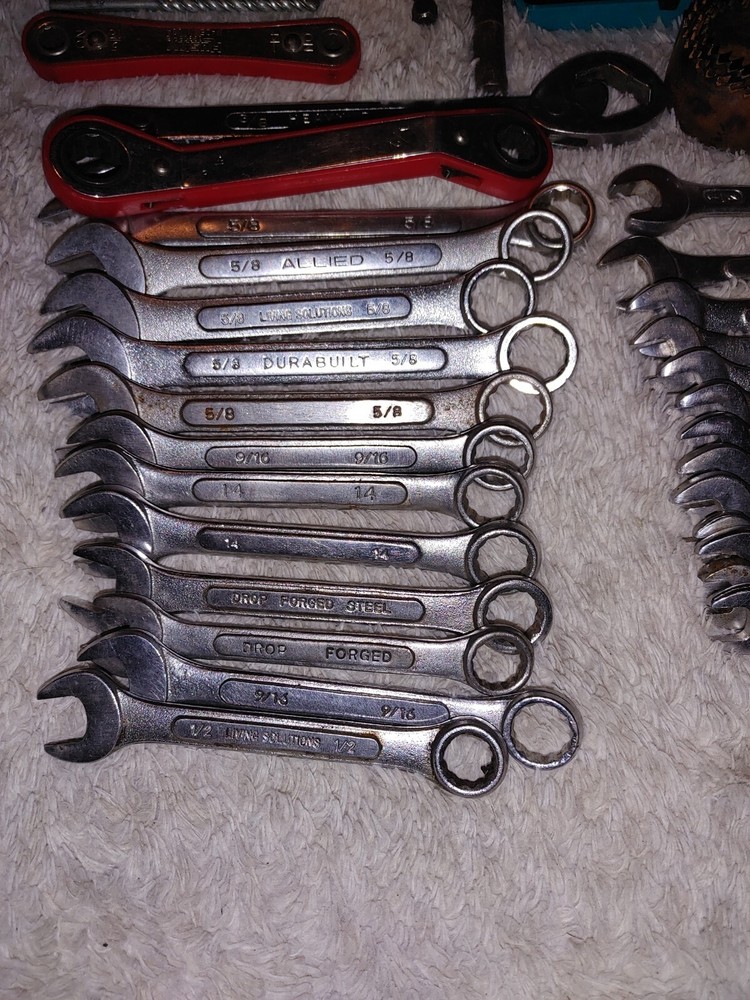 Huge lot of mixed hand tools mixed name brands like craftsman, huskie, ect... Everything you see is what you get.. Except the box in photos..