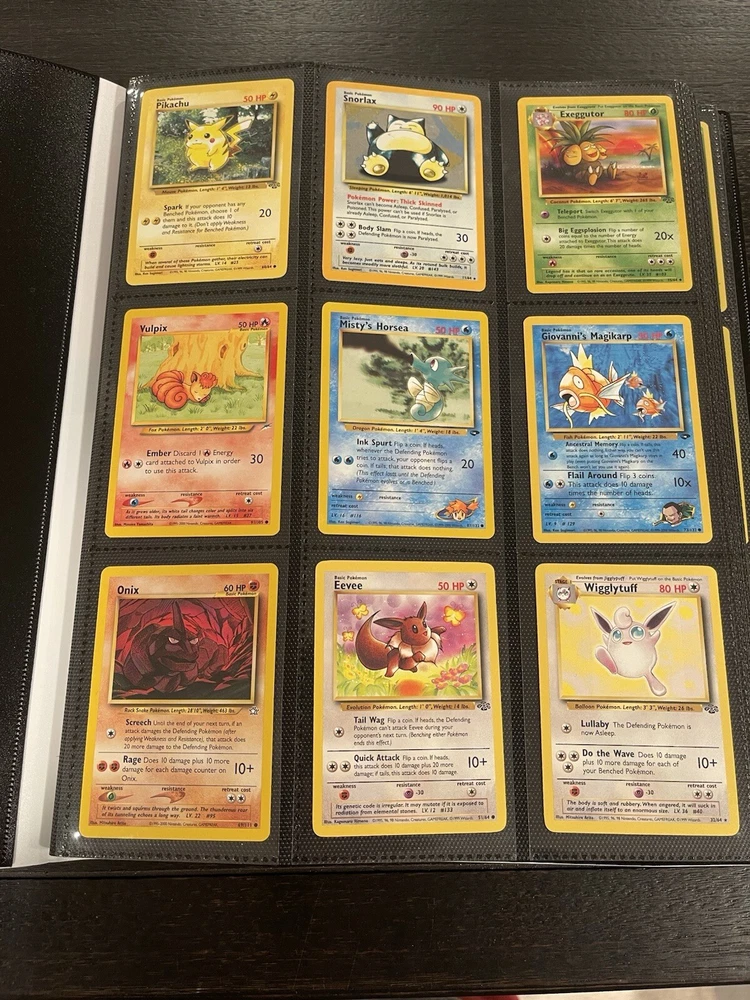 Overview: For sale is one enormous Pokémon bundle—an all-in-one package perfect for collectors, players, or resellers looking to significantly expand their collection. This comprehensive lot includes: • Pokémon Cards: • 1,244 Standard Cards: • Comprised of 1,020 cards plus an additional 224 cards from various sets. Included are vintage cards from the classic 1995 Safari Pack, Gym Heroes, Promo, and Fossil sets (with dates from 1995, 1996, and 1998), as well as newer holographic cards (for example, an MCharizardEX) adding modern collectible appeal. • 89 Pokémon Online Trading Game Code Cards: • These codes unlock digital content for the Pokémon Trading Card Game Online. • Accessories & Collectibles: • Binder: • A sturdy binder (partially filled with cards) to help you organize and display your collection. • Travel Card Case: • A protective case designed for safely transporting your cards on the go. • Enamel Pins: • A selection of Pokémon enamel pins featuring popular designs (including favorites such as Snorlax, Raikou, etc.). Please review the photos for exact details on each pin. • Stickers: • Assorted Pokémon-themed stickers that are great for decorating binders, laptops, or personal items. • Card Protectors: • A set of clear, durable sleeves to safeguard your Pokémon cards from wear and tear. Additional Details: • This massive bundle offers a nostalgic mix of vintage cards alongside modern holographic collectibles, providing both long-time fans and newer collectors a diverse range of Pokémon memorabilia. • All items have been carefully stored and are in excellent condition. The lot is sold as-is, providing a comprehensive package for any Pokémon enthusiast.