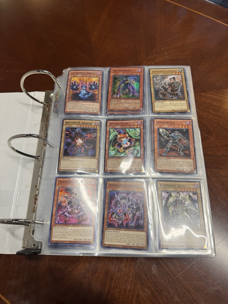 This is AS FOUND! There are at least 945 cards, I counted all the pages but left out the pages that were not 100% filled. Some pages may have 3-6 cards on them but that is very few pages and I did not include those in the total. This is a storage unit find, huge binder. All unsearched, I just don’t have the time. towards the back of the book there are many purple and green/teal cards. The majority are the classic colored cards lol, if you cant tell i have no idea about any of this stuff. MAINLY 1996 from what pages i saw, i did see a couple 2020. I did not look at each page