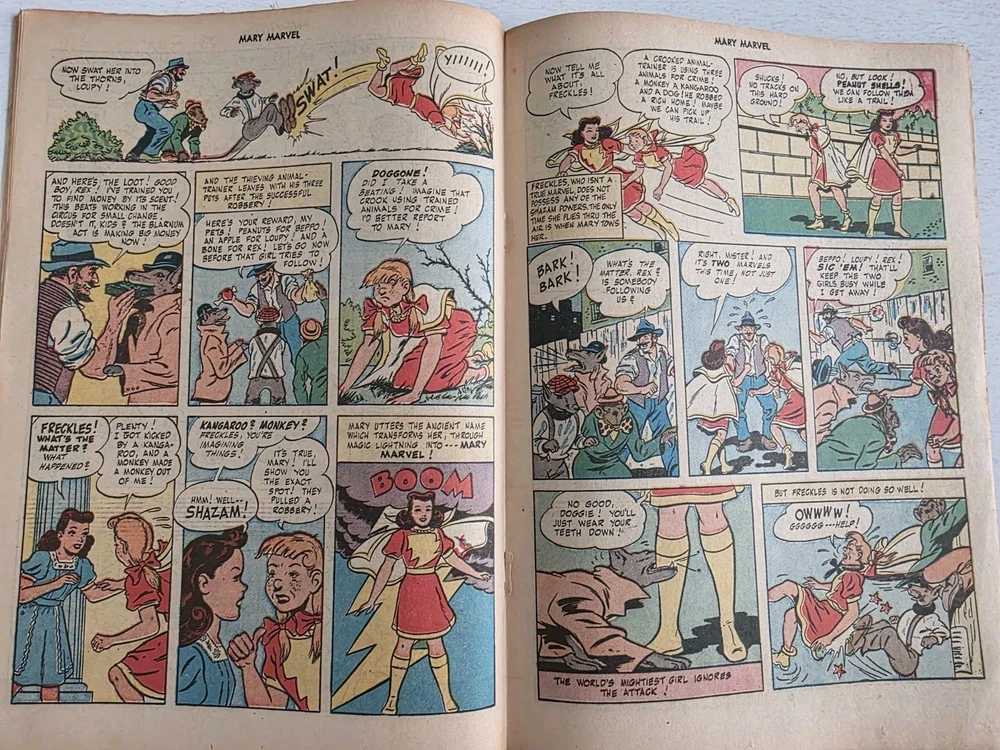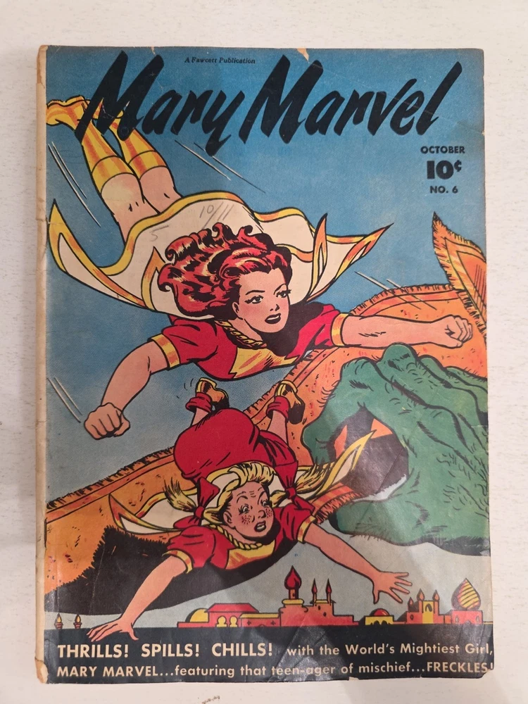 The product is a lot of 6 Captain Marvel Adventures issues featuring Captain Marvel and other characters from the Golden Age of Comics. The comics are from the Fawcett universe and published by Fawcett Comics in 1950. With cover art by CC Beck, these vintage comic books are part of the Marvel Family superhero team series, making them highly collectible for comic book enthusiasts. The colorful comics showcase the adventures of characters like Captain Marvel, Mary Marvel, Freddy Freshman, Ibis the Invincible, and Golden Arrow, making this lot a valuable addition to any comic book collection. *Includes #56- VG+ #78- VG+ #86-FN #123-VG+ #127- VG MARY MARVEL #6- VG- - All Complete, WWII ERA Beauties, some spine wear, spine splits creasing and ticks. See pictures - Bagged and boarded - Shipped with Gemini packing to insure no damage during shipping - Usps Priority Check out our 1000s of comics in our store We combine shipping