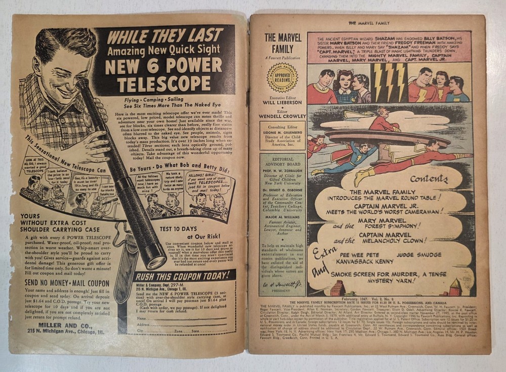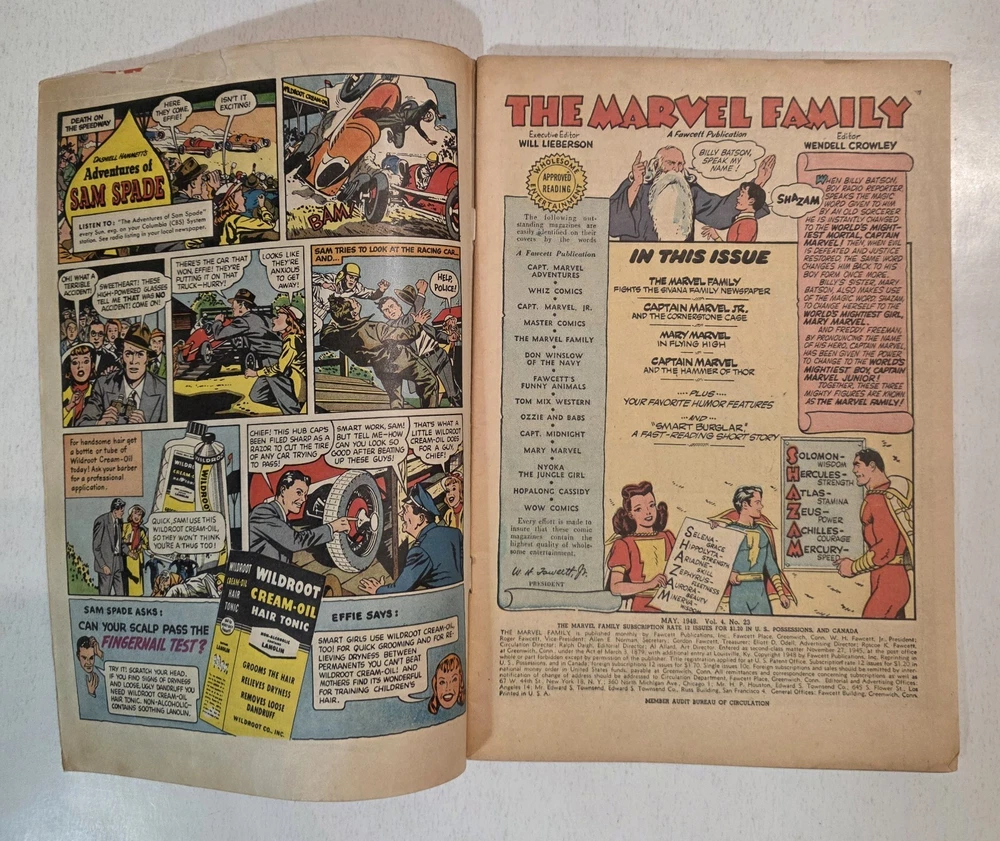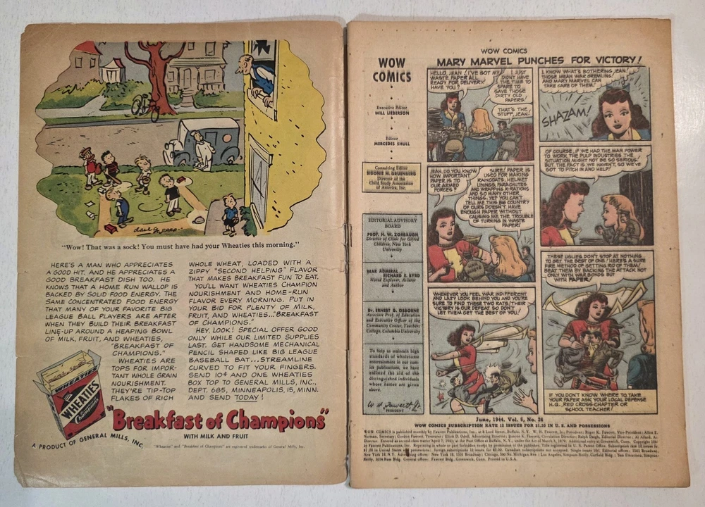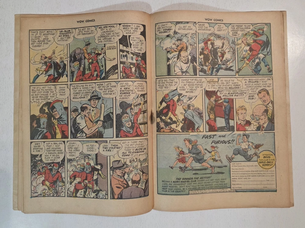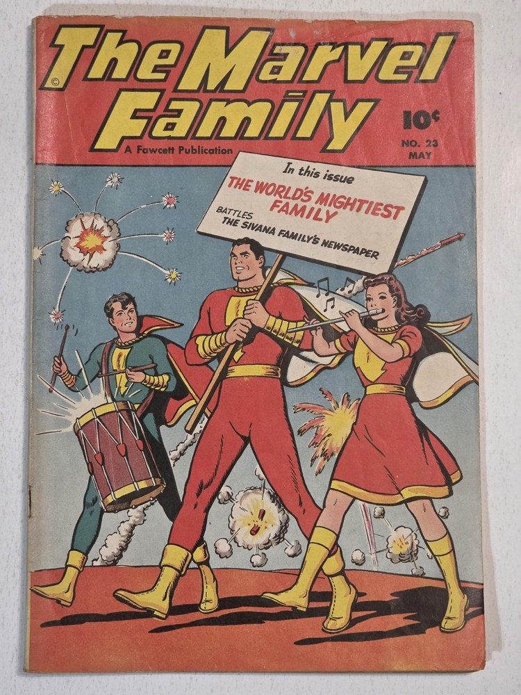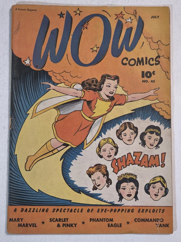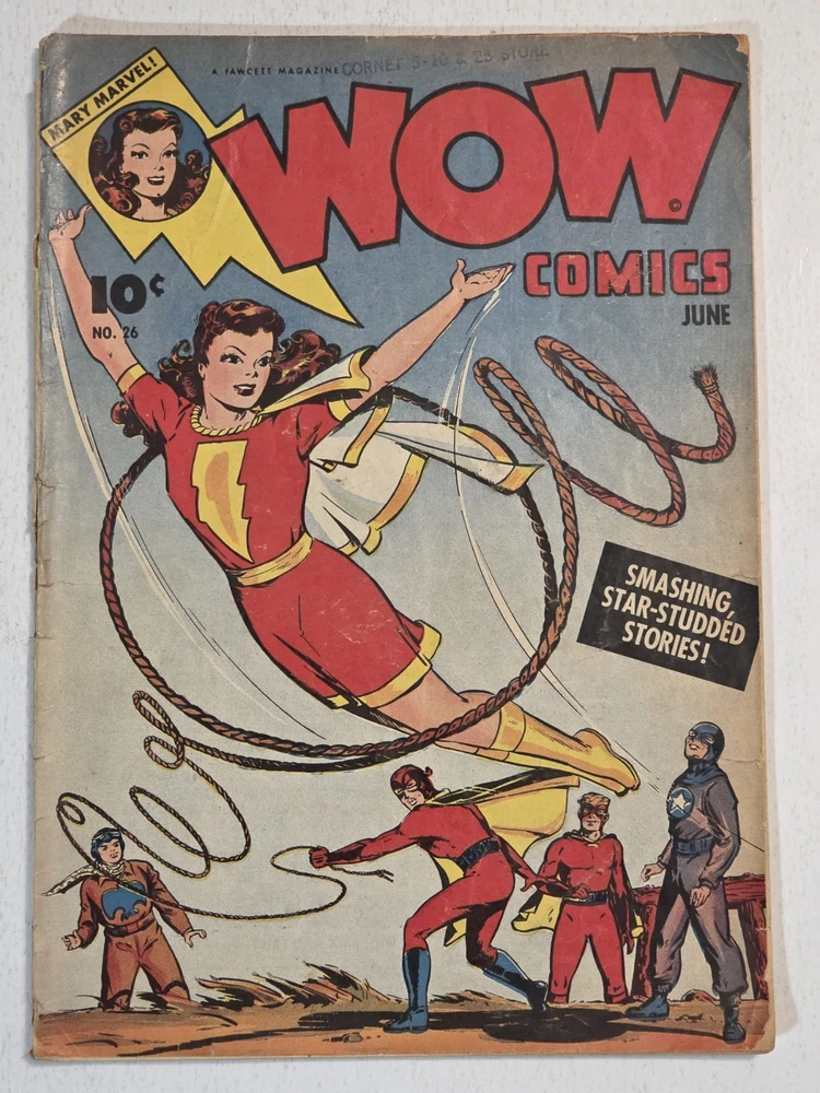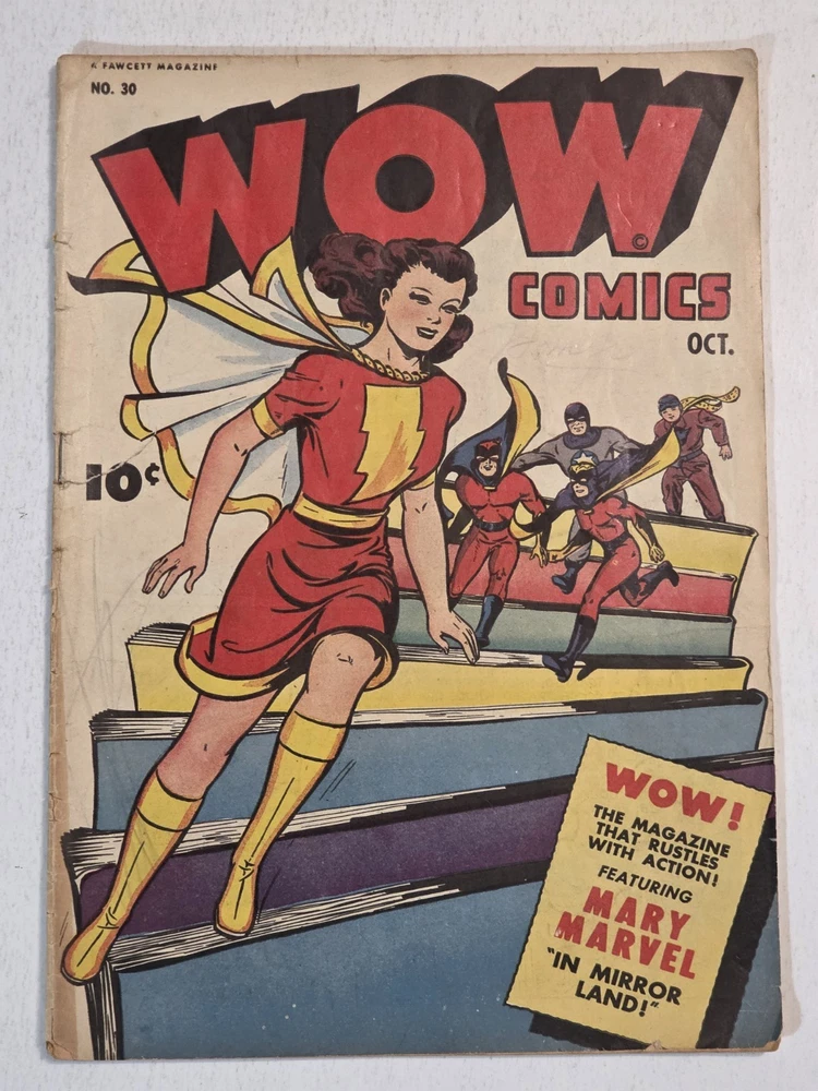 The product is a lot of 6 The Marvel Family and WOW Comics issues featuring Captain Marvel and other characters from the Golden Age of Comics. The comics are from the Fawcett universe and published by Fawcett Comics in 1944. With cover art by CC Beck, these vintage comic books are part of the Marvel Family superhero team series, making them highly collectible for comic book enthusiasts. The colorful comics showcase the adventures of characters like Captain Marvel, Mary Marvel, Freddy Freshman, Ibis the Invincible, and Golden Arrow, making this lot a valuable addition to any comic book collection. *Includes The Marvel Family #8 VG- Detached top staple #23 VG/FN #72 FN WOW #26 Detached cover G #30 VG #45 G/VG - All Complete, WWII ERA Beauties, some spine wear, spine splits creasing and ticks. See pictures - Bagged and boarded - Shipped with Gemini packing to insure no damage during shipping - Usps Priority Check out our 1000s of comics in our store We combine shipping