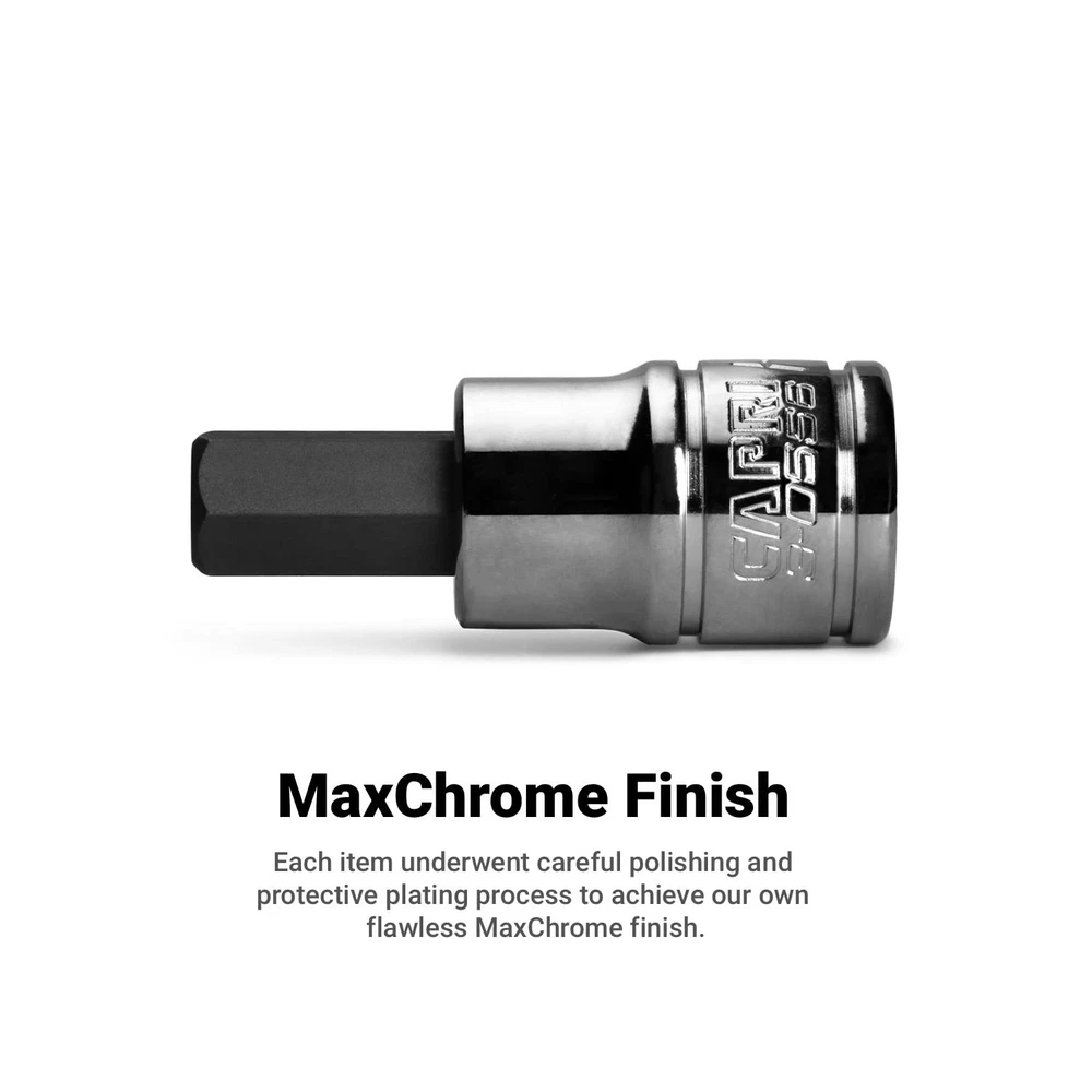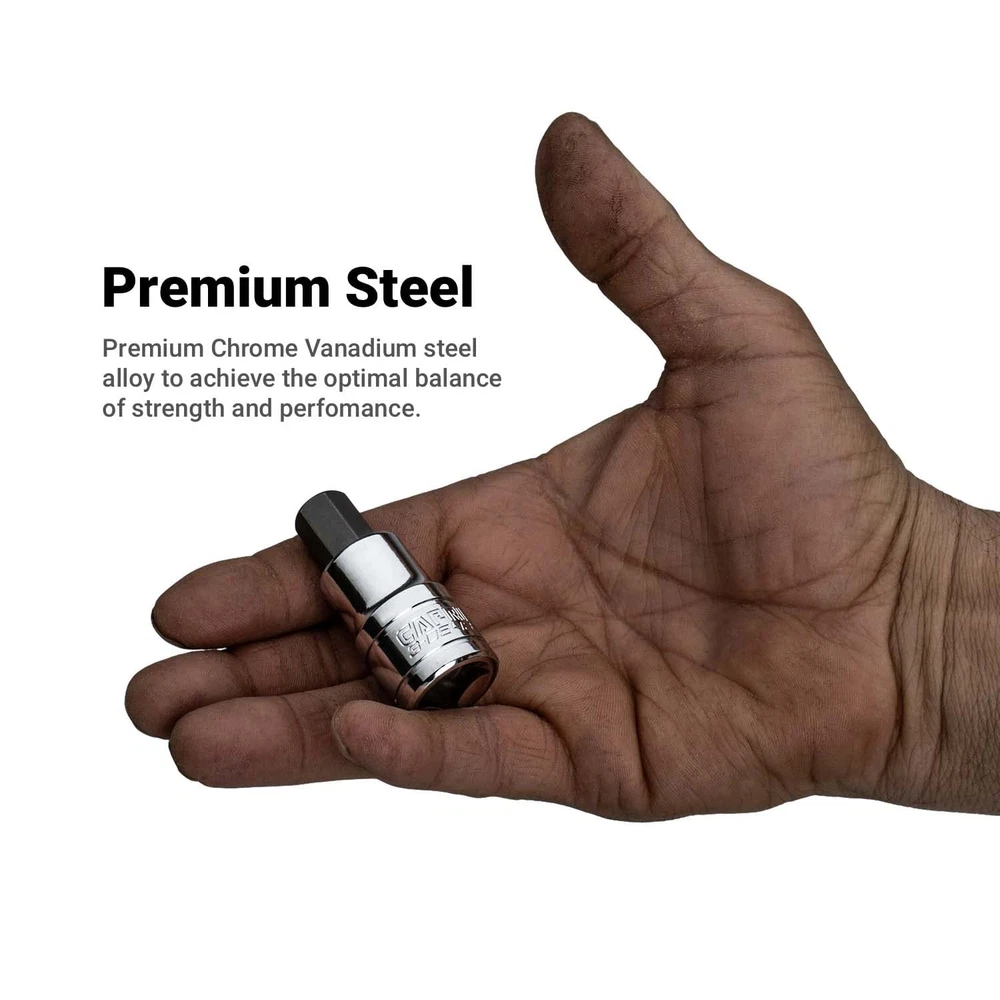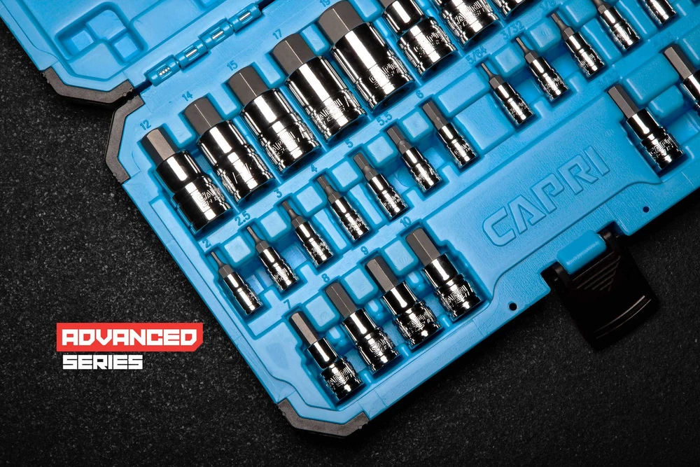 The ADVANCED SERIES sockets and bit sockets are made for the most demanding professionals. Crafted from custom forged premium steel, they undergo proprietary heat treatment and are precisely machined to perform in the toughest situations. The bits are forged with premium S2 steel. These S2 steel bits are exceptionally strong and durable; they withstand high torque and do not twist, protecting both the bit and the fastener. The largest 1/2 in. drive hex bits (9/16 in./14 mm and above) are forged with custom Chrome Vanadium steel, giving these large bits balanced tensile strength for optimal performance. Our proprietary advanced heat treatment process further enhances the properties of the S2 and Chrome Vanadium steel alloy to achieve the optimal balance of strength and performance. Every hex bit is made true-to-size for the entire length, letting you use the full length of the bit. All bits have chamfered end to ensure a smooth fit onto fasteners. The sockets are made from premium Chrome Vanadium steel, plated with our SmartKrome protective plating for enhanced durability and corrosion resistance. Organized in an impact-resistant tool case, the set includes 32 most frequently used hex bit sockets: 1/4 in. drive: 2, 2.5, 3, 4, 5, 5.5, 6 mm; 3/8 in. drive: 7, 8, 9, 10 mm; 1/2 in. drive: 12, 14, 15, 17, 19 mm; 1/4 in. drive: 5/64, 3/32, 1/8, 5/32, 3/16, 7/32, 1/4 in.; 3/8 in. drive: 9/32, 5/16, 3/8 in.; 1/2 in. drive: 7/16, 1/2, 9/16, 5/8, 11/16, 3/4 in. The ADVANCED SERIES sockets and bit sockets are made for the most demanding professionals. Crafted from custom forged premium steel, they undergo proprietary heat treatment and are precisely machined to perform in the toughest situations Premium S2 steel forged bits are exceptionally strong and durable. These S2 steel bits withstand high torque and do not twist, protecting both the bit and the fastener. The largest 1/2 in. drive hex bits (9/16 in./14 mm and above) are forged with custom Chrome Vanadium steel, giving these large bits balanced tensile strength for optimal performance Our proprietary advanced heat treatment process further enhanced the S2 and Chrome Vanadium steel alloy to achieve the optimal balance of strength and performance. Every hex bit is made true-to-size for the entire length, letting you use the full length of the bit. All bits have chamfered end to ensure a smooth fit onto fasteners Premium Chrome Vanadium steel sockets plated with our SmartKrome protective plating are durable and corrosion resistant Organized in an impact-resistant tool case, the set includes 32 most frequently used hex bit sockets: 1/4 in. drive: 2, 2.5, 3, 4, 5, 5.5, 6 mm; 3/8 in. drive: 7, 8, 9, 10 mm; 1/2 in. drive: 12, 14, 15, 17, 19 mm; 1/4 in. drive: 5/64, 3/32, 1/8, 5/32, 3/16, 7/32, 1/4 in.; 3/8 in. drive: 9/32, 5/16, 3/8 in.; 1/2 in. drive: 7/16, 1/2, 9/16, 5/8, 11/16, 3/4 in.