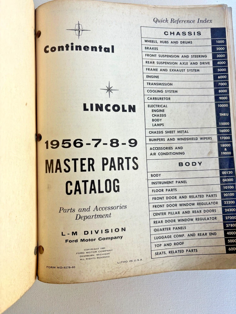 This is a antique master parts catalog for Continental Lincoln vehicles 1956-1959. It contains comprehensive information about the parts needed to repair and maintain your vehicle, as well as details about the publication year, type, format, language, and author. The catalog is a valuable resource for owners of these classic cars, providing them with the necessary information to keep their vehicles running smoothly. The publication name is Ford Motor Co., and the source language is English. This catalog is categorized under Dictionaries & Reference, Textbooks, Education & Reference, and Books & Magazines.