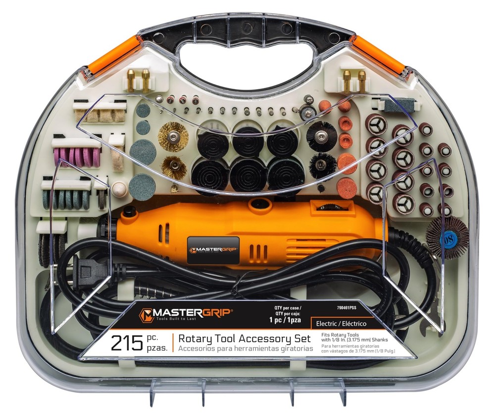 High-Speed Precision: Achieve unparalleled precision with a no-load speed of up to 33000 RPM, making this AC Rotary Power Tool ideal for grinding, carving, sanding, drilling, polishing, and cutting. Compact and Powerful: Sized at 9" x 2 1/4" x 1 7/8" with a rated power of 135W @ 1.1 Amp, this tool is a compact powerhouse, perfect for hobbyists, households, and offices. Versatile Accessories: Comes with a whopping 215 accessories, including collets, grinding wheels, sanding drums, precision drills, diamond drills, wood carving bits, and more, ensuring you have the right tool for every task. Adjustable Speed and Safety: Electronic speed adjustment provides customized control, and ETL certification (ETL 4006094) ensures safety compliance. The 6' power cord enhances flexibility in any workspace. Organized Storage Solution: Keep everything neat and accessible with the included injection case. No more searching for the right accessory – have them all at your fingertips for efficient storage and transportation.