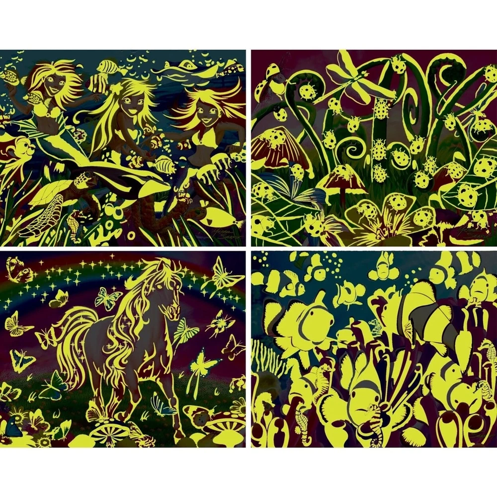 Masterpieces Glow In The Dark Puzzle Set 100 Piece 4-Pack Kids Educational Fun