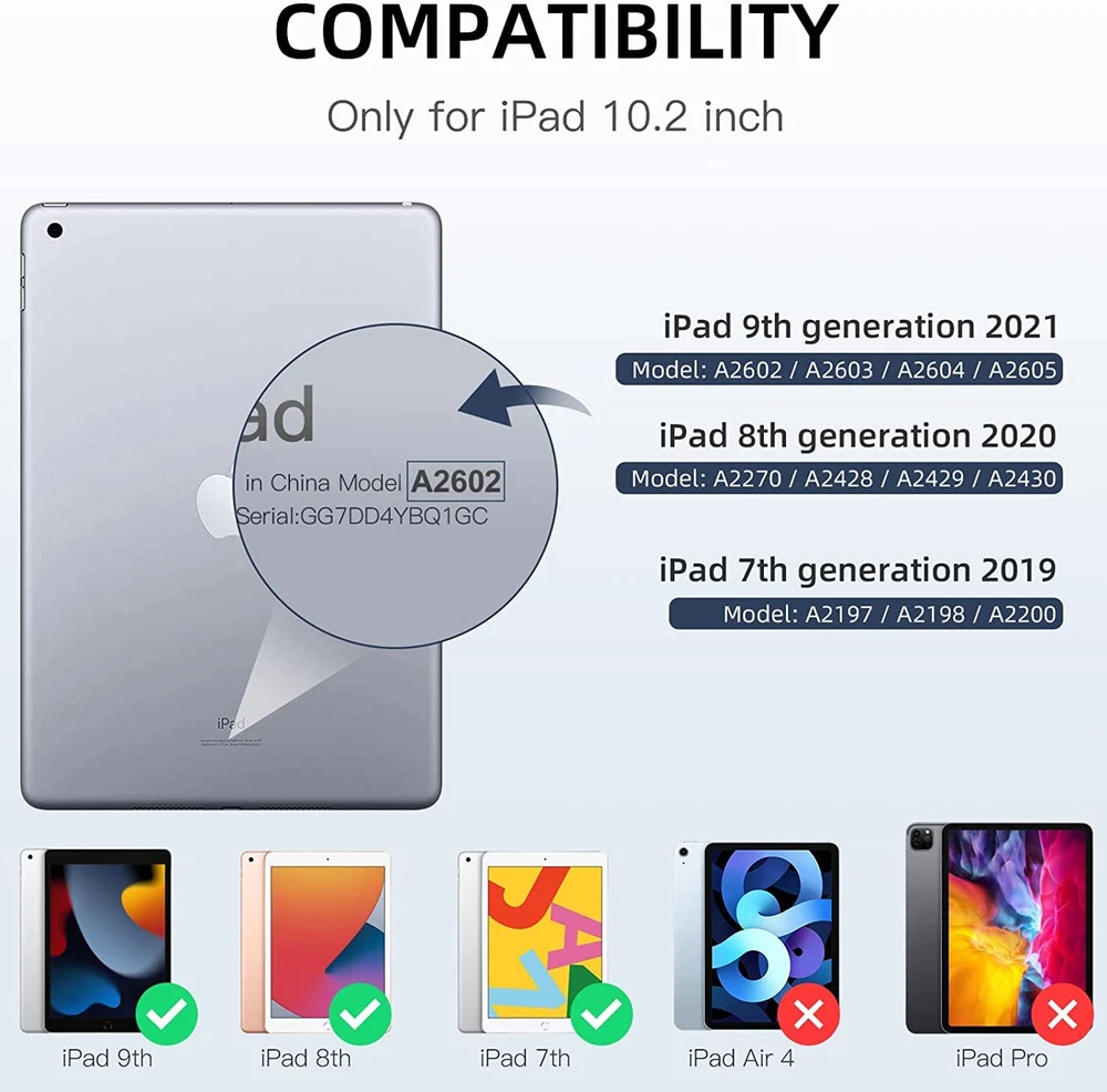 Mastten Case Compatible with iPad 9th/8th/7th Generation Case, for iPad 10.2 In Features: Compatibility: Case specially designed for iPad 10.2 inch iPad 9th/8th/7th Generation 2021/2020/2019. NOTE: Not Compatible with any other device, please check your model number before placing order Full Protection: Protective case made with high quality durable TPU and PU, slim and lightweight design with excellent craftsmanship and touch feeling. Prevents the tablet from scratching and bumping, and provide the maximum protection for iPad 10.2 inch tablet Auto Wake/Sleep: Built-in magnetic strip in the front cover, it featured auto wake/ sleep. Once you open or close for iPad case, the smart magnetic senor will wake up or make the tablet to sleep. No wasting the battery energy and extend battery standby time Perfect Fit: Precise cutouts make it easy access to all functional buttons and features(camera, speaker, senors and charging ports) without remove your case cover. Attention: Pencil is NOT included Adjustable Angles: Anti-slip material and tablet stand make for iPad stand securely at two different positions on the table. Provide you comfortable viewing and typing experiences. Pencil holder is available for you when relaxing Features: Compatibility: Case specially designed for iPad 10.2 inch iPad 9th/8th/7th Generation 2021/2020/2019. NOTE: Not Compatible with any other device, please check your model number before placing order Full Protection: Protective case made with high quality durable TPU and PU, slim and lightweight design with excellent craftsmanship and touch feeling. Prevents the tablet from scratching and bumping, and provide the maximum protection for iPad 10.2 inch tablet Auto Wake/Sleep: Built-in magnetic strip in the front cover, it featured auto wake/ sleep. Once you open or close for iPad case, the smart magnetic senor will wake up or make the tablet to sleep. No wasting the battery energy and extend battery standby time Perfect Fit: Precise cutouts make it easy access to all functional buttons and features(camera, speaker, senors and charging ports) without remove your case cover. Attention: Pencil is NOT included Adjustable Angles: Anti-slip material and tablet stand make for iPad stand securely at two different positions on the table. Provide you comfortable viewing and typing experiences. Pencil holder is available for you when relaxing eBay integration by