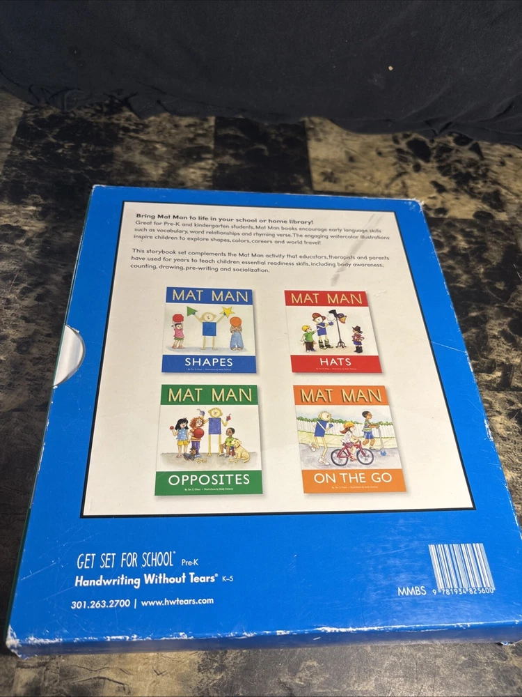 Dive into early education with the Mat Man "Get Set for School" 4-book set by Jan Z. Olsen. Ideal for little learners aged 2-8, this series is designed to build foundational skills in a fun and engaging way. Each hardcover book is richly illustrated by Molly Delaney, turning the learning experience into an exciting adventure. The set encompasses various topics such as shapes, opposites, and hats, offering a well-rounded educational journey. Published in 2010 by Handwriting Without Tears, these books are not just textbooks but interactive guides that promote holistic learning in the subjects of Homeschooling and Education.