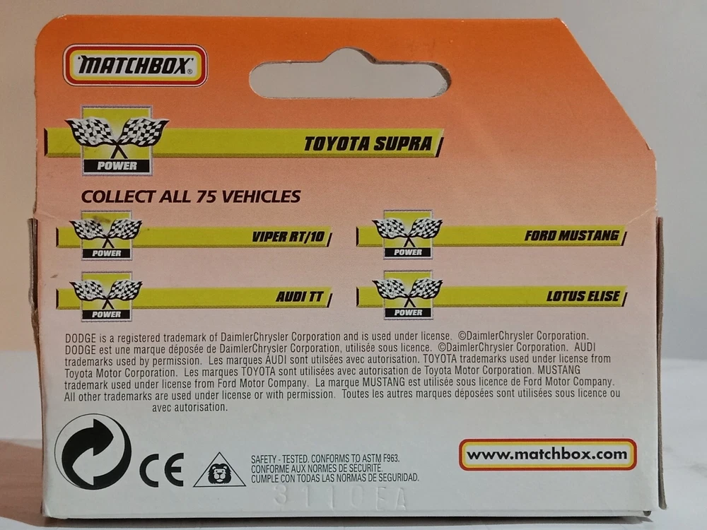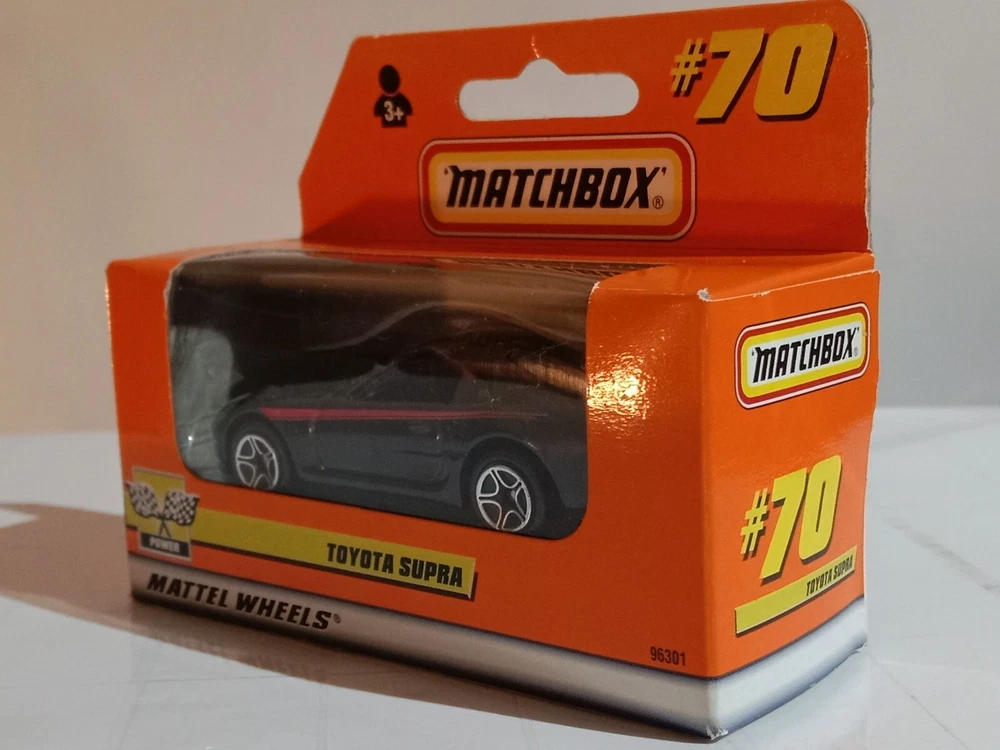 Acquire this 1999 Matchbox 1-75 Toyota Supra No.70 die-cast model. Brand new, with minor box wear due to storage. An excellent addition for collectors and Toyota enthusiasts.