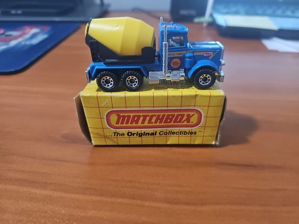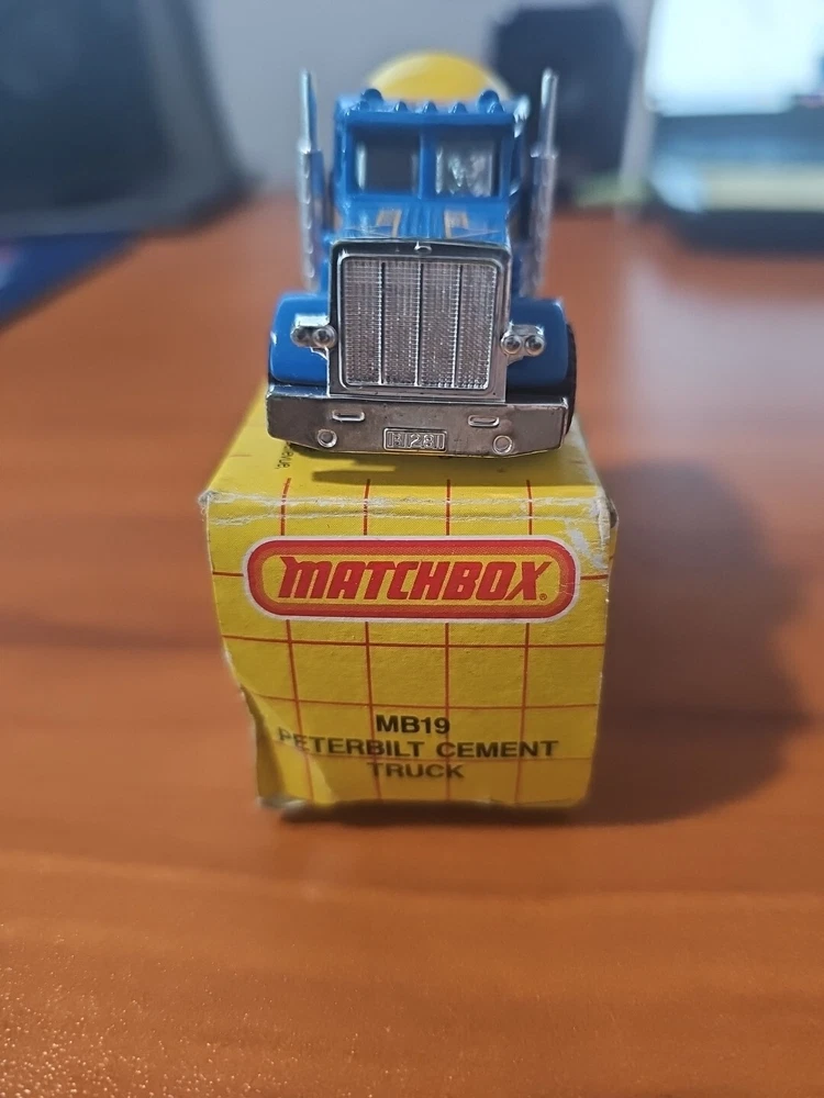 Matchbox #19 Peterbilt Cement Truck, With Box, 1981. Blue/Yellow.