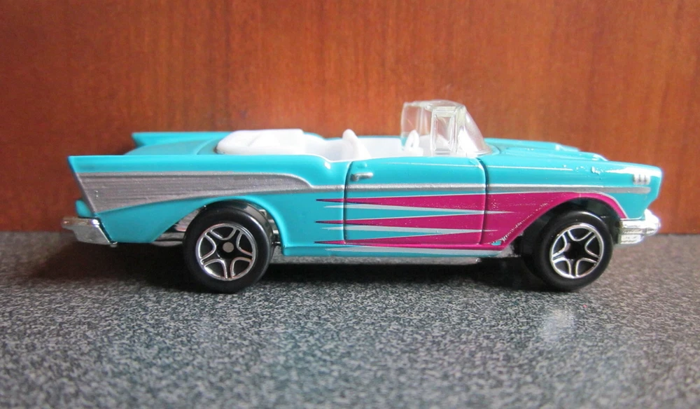 NOTE: We offer combined shipping discounts where possible. If you are purchasing more than one of our items, please add them to your Shopping Cart and click the "Request Total" button. We will send you an invoice reflecting the new total with the combined shipping cost. For sale is a 1:66 scale Matchbox 1957 Chevrolet convertible. Although the car is loose (no package), it has been stored in an acrylic case since purchase, and is in good condition. The photos provided above show the actual vehicle you will receive.