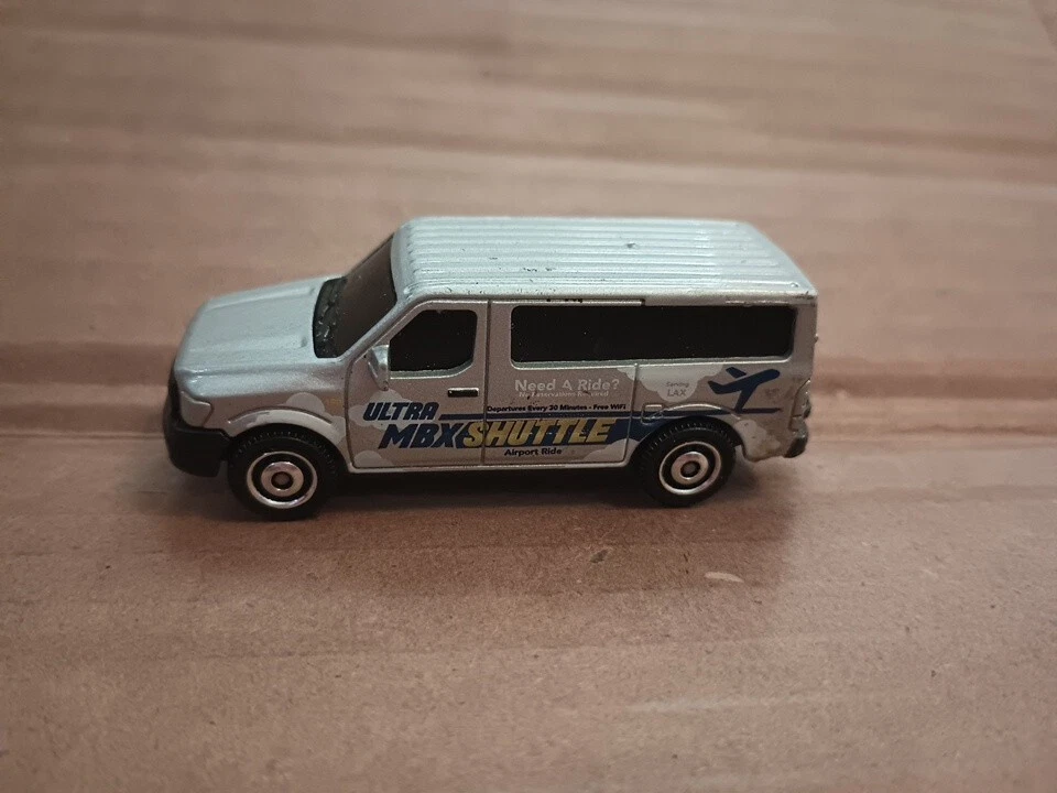 For sale is a Matchbox 2014 Nissan NV Passenger Van Silver MBX Airport Shuttle Bus. This 1/64 scale diecast vehicle is perfect for collectors and children alike. The silver color and airport shuttle theme make it a unique addition to any collection or toy box. The vehicle features rolling wheels and is branded with the Matchbox serie logo. It is suitable for boys and girls aged 3 years and up, and is recommended for adult collectors as well. This Nissan NV Passenger Van is made in Thailand and is part of the Cars character family. Add it to your collection today! Will secure/pad/protect. Items as shown. No returns. Check pictures. Can send more pictures on request.