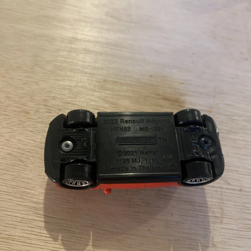 This is a Matchbox diecast car model of a 2022 Renault Megane in 1:64 scale. The vehicle is designed in vibrant red colour and features a 1.8 6-speed engine. It is a part of the Cars character family, suitable for both boys and girls who enjoy playing with toy vehicles. Made of durable diecast material, this miniature replica of the 2022 Renault Megane is a great addition to any toy car collection.