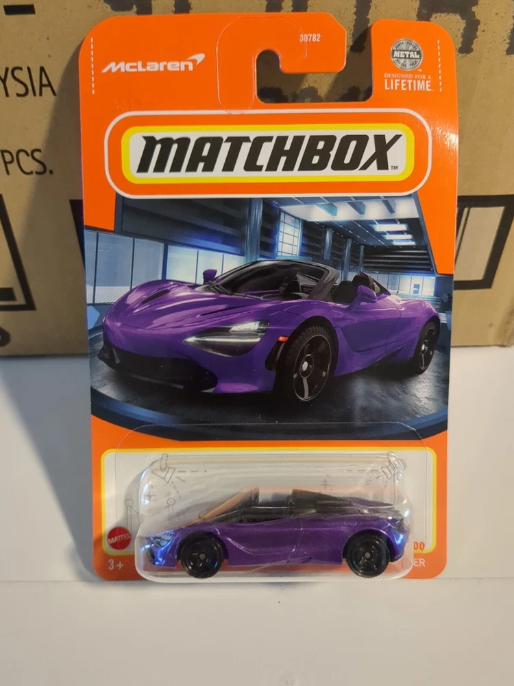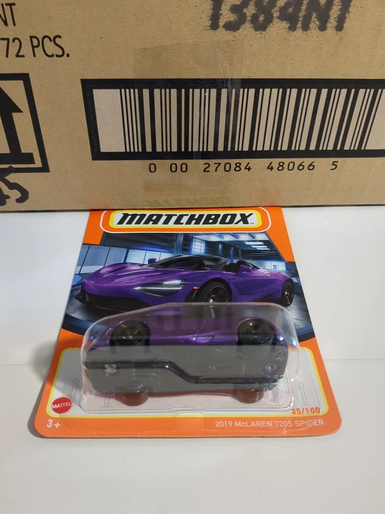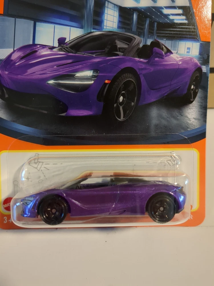 For the car enthusiasts out there, this Matchbox diecast model of a 2019 McLaren 720S Spider in metallic purple is a must-have addition to your collection. This unopened box features a 1:64 scale model of the vehicle, with intricate details that make it stand out. The brand Matchbox is known for its quality and this model is no exception, with its durable material and attention to detail. This mixed type model is perfect for display or play, and is suitable for all ages. The vehicle make and model are McLaren 720S Spider and the year of manufacture is 2024. This item falls under the categories of Toys & Hobbies, Diecast & Toy Vehicles, and Cars, Trucks & Vans. Get your hands on this limited edition model today! See pics for condition