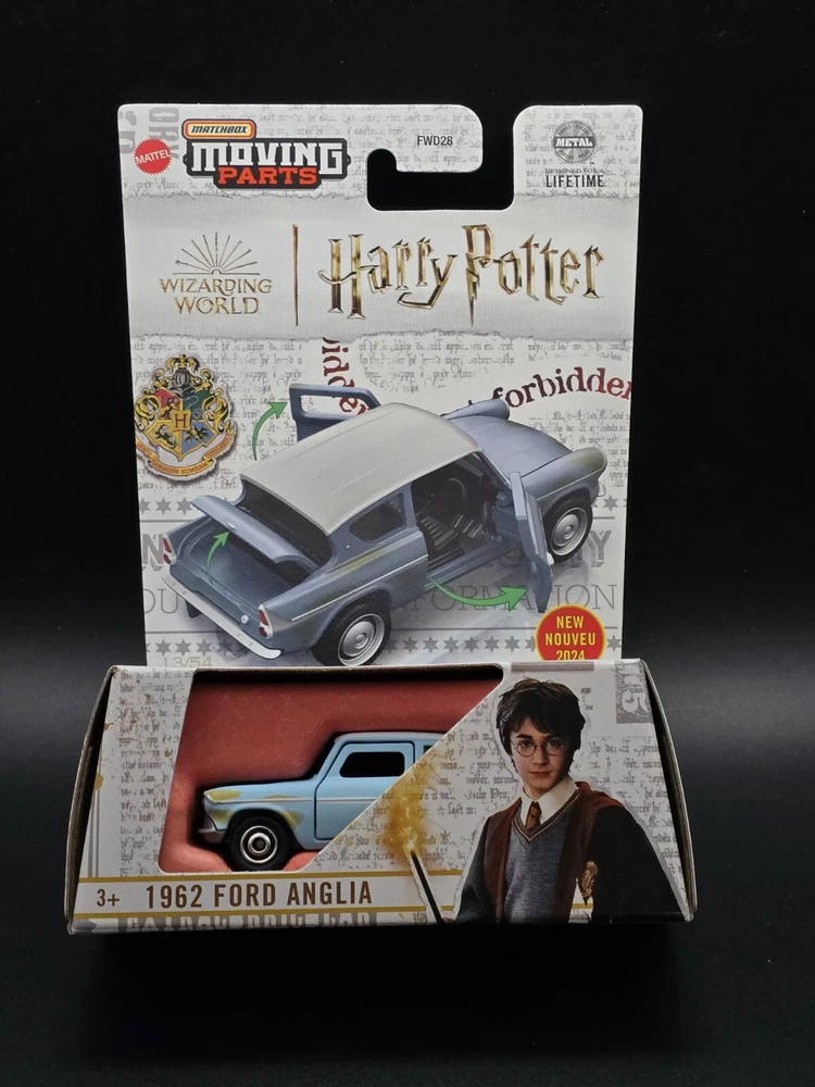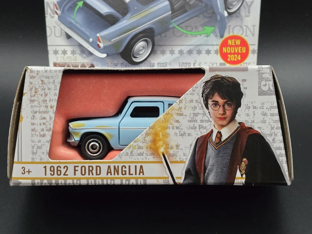 Explore the wizarding world with the Matchbox 2024 Moving Parts Harry Potter Ford Anglia. Crafted with precision in 1:64 scale, this diecast model is a true replica of the classic 1962 vehicle, finished in an elegant blue hue that's sure to charm collectors and fans alike. Celebrating the iconic series, this special edition piece is a must-have for enthusiasts of the Harry Potter universe and diecast model collectors. The Anglia comes from the highly sought-after Matchbox Harry Potter series, showcasing the intricate design and attention to detail that the brand is known for. It features an unopened box, ensuring it remains pristine for display or as a treasured collectible. Whether for play or display, this model is a delightful nod to the beloved character family and a fine addition to any collection.
