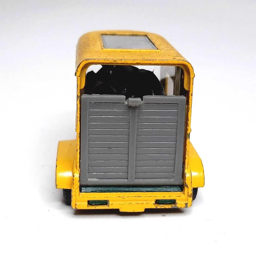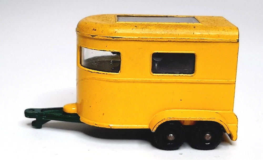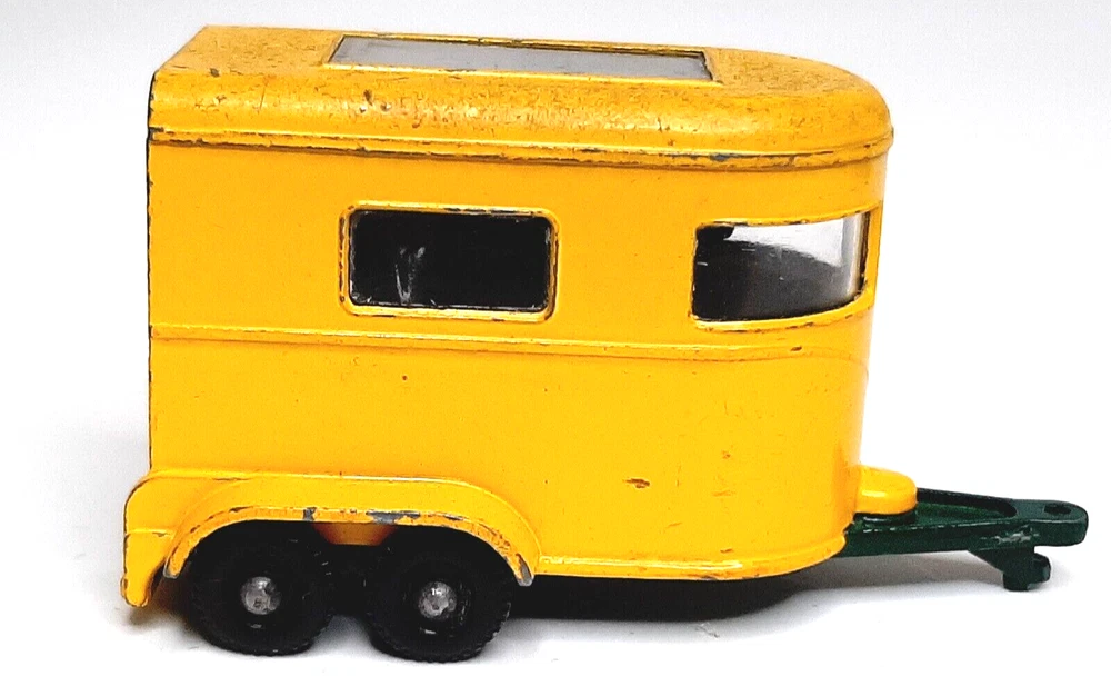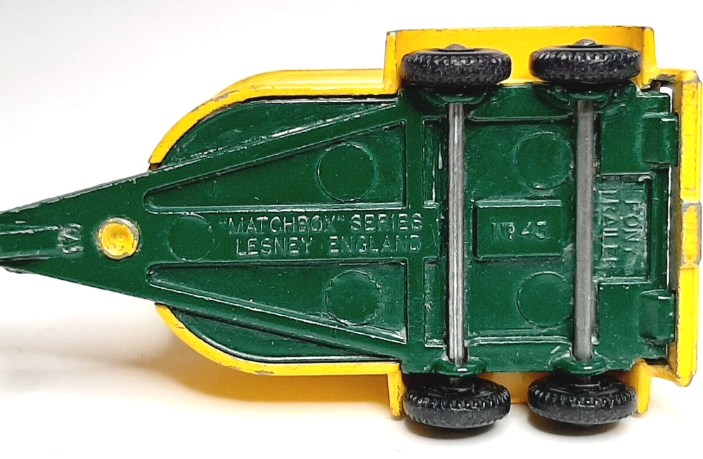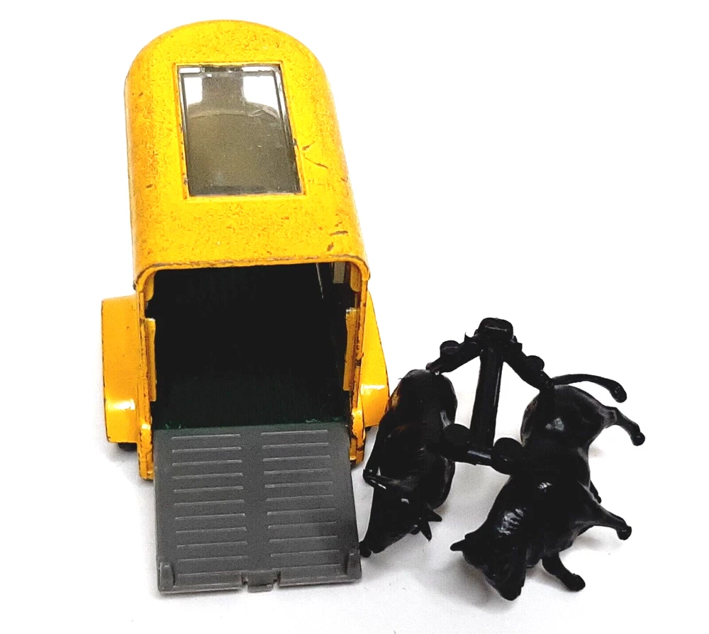 Matchbox #43 Pony Trailer Yellow Horse Cattle Vintage Diecast Model Vehicle Great condition with only minimal finish wear; comes with two cows, but no horses