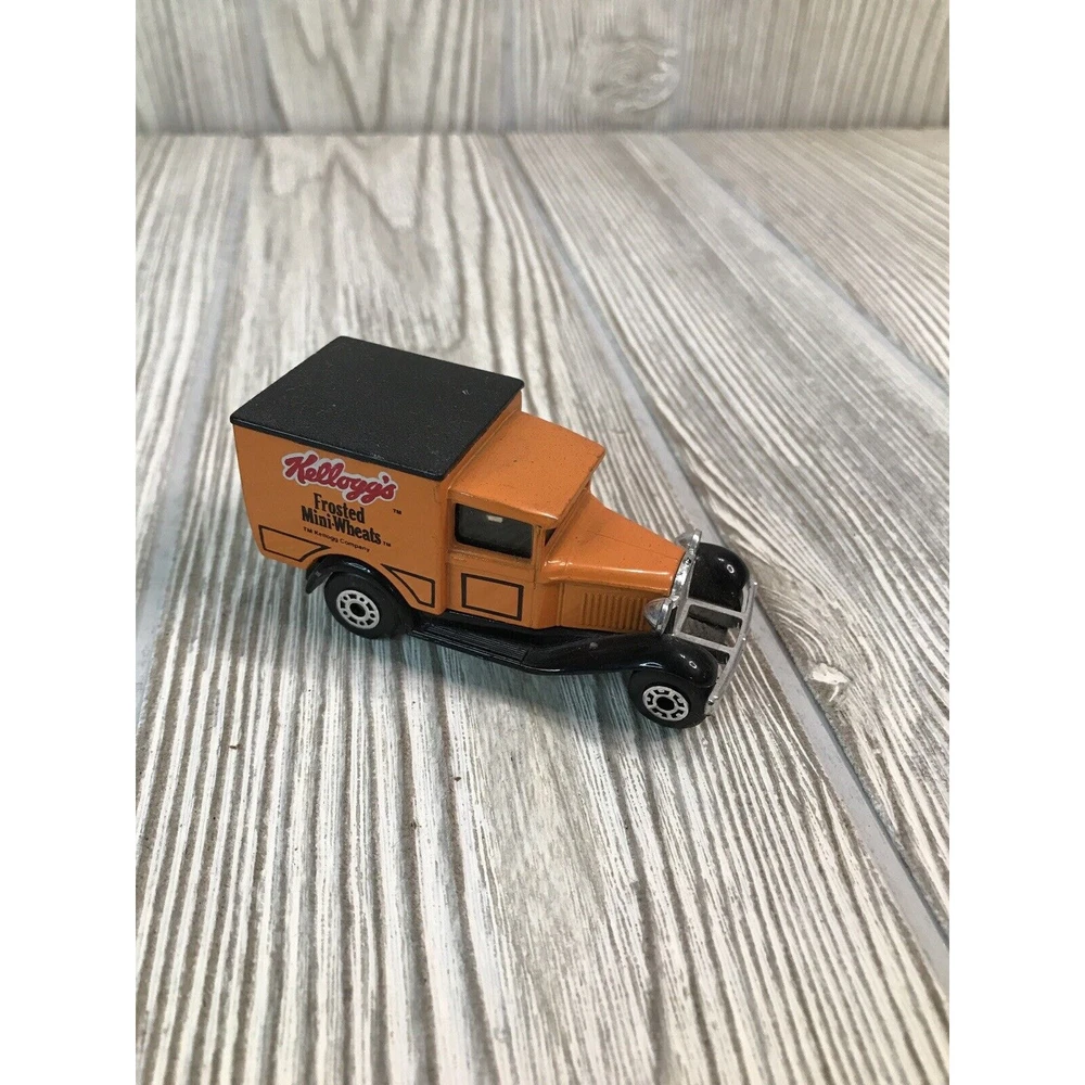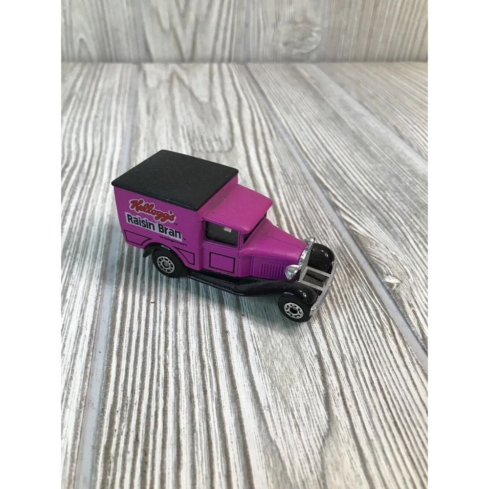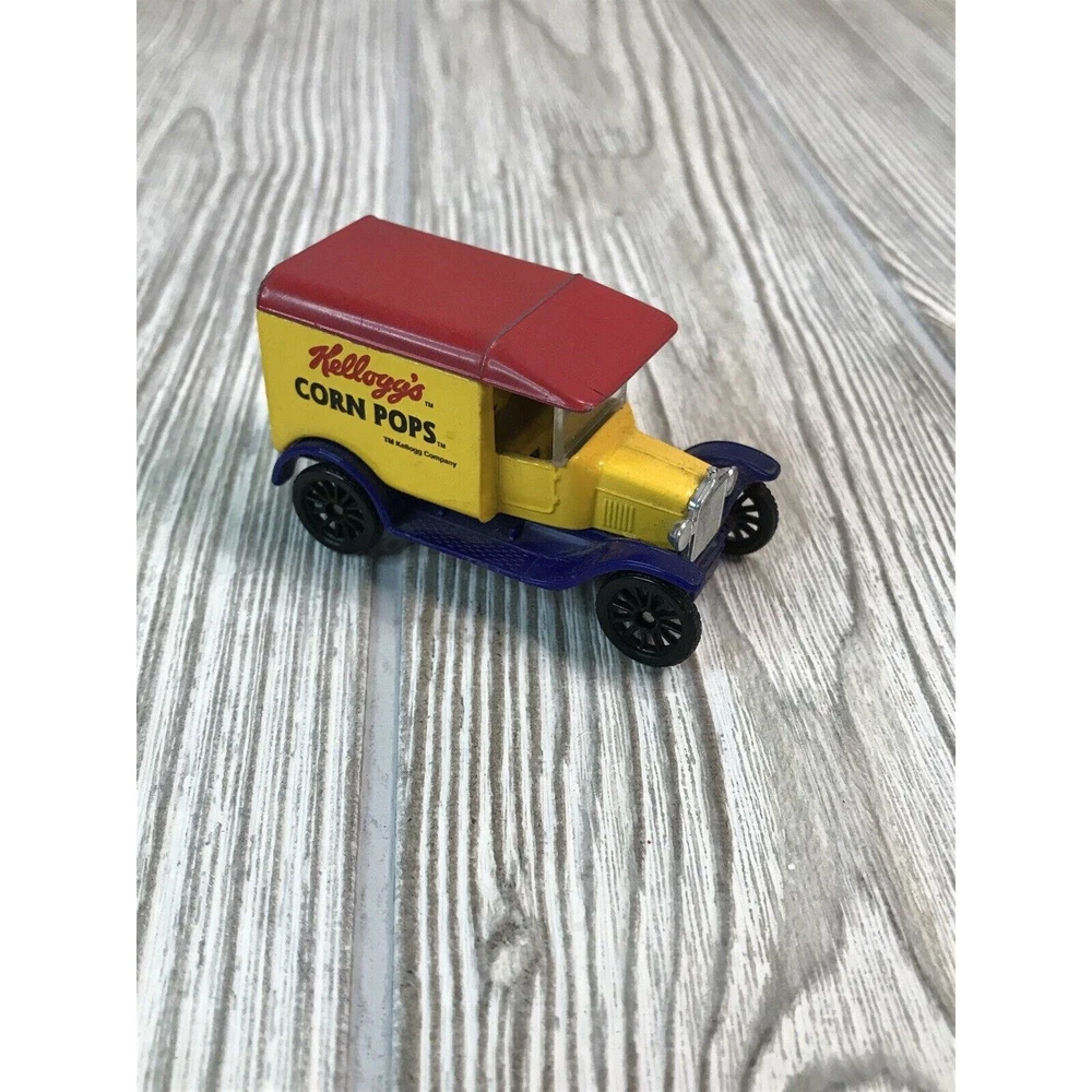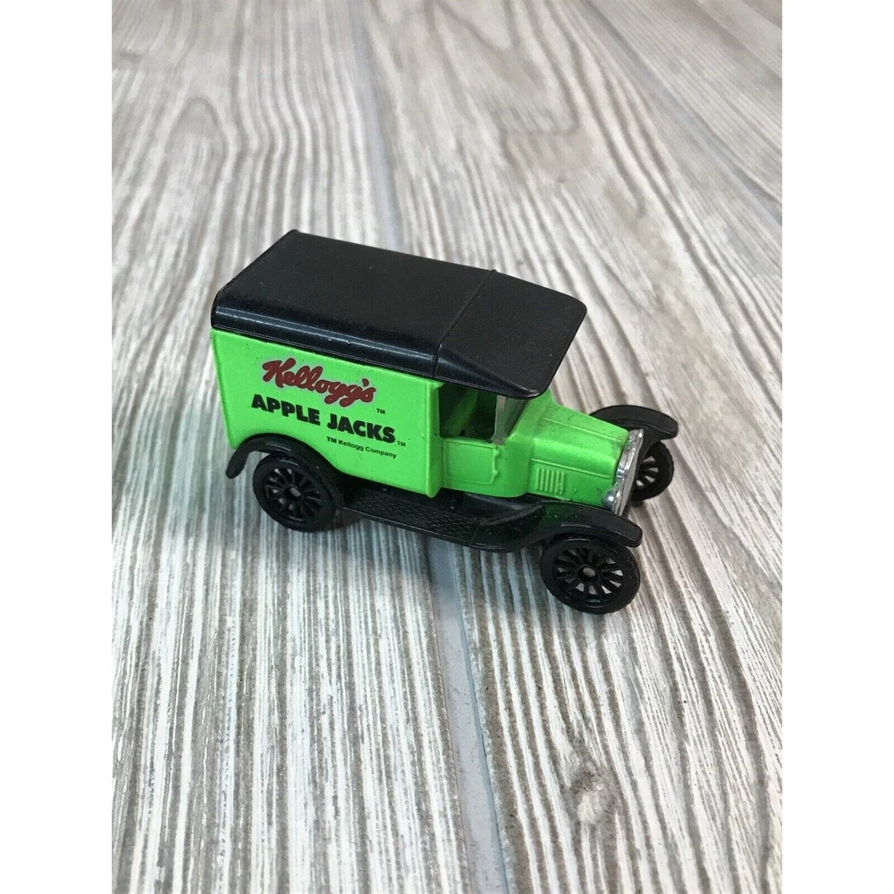 Lot Of 4 Matchbox Die cast 1:52 Scale Cars. Kellogg’s Cereal Advertising. 2 Ford Model A's and 2 Model T's. Vintage Kellogg's Raisin Bran and Frosted Mini-Wheats Model A's from 1979. Kellogg's Apple Jacks and Corn Pops 1921 Model T's from 1989.
