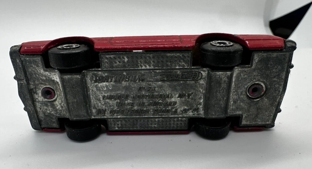 Year of Manufacture:1979Estado del artículo:UsadoAutographed:NoVehicle Year:1979Series:Matchbox SuperfastMaterial:DiecastVehicle Type:CarColor:RedScale:1:64Country/Region of Manufacture:United KingdomVehicle Make:LincolnBrand:MatchboxModel:MATCHBOX LESNEY SUPERFAST NO. 28 LINCOLN CONTINENTAL MK VCustomized:No