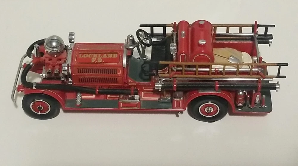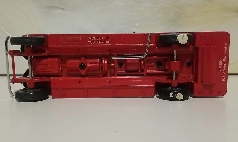 The Matchbox Models of Yesteryear 1927 Ahrens-Fox N-S-4 Lockland Fire Engine YSFE04 is a diecast toy vehicle of a vintage fire engine. This limited edition model is part of the Matchbox series featuring a 1927 AHRENS FOX fire truck in a vibrant red color. It is crafted in a 1:43 scale and designed to appeal to boys and girls who are interested in firefighting vehicles. This collectible piece from 1997 showcases intricate details and is a great addition to any toy vehicle collection.