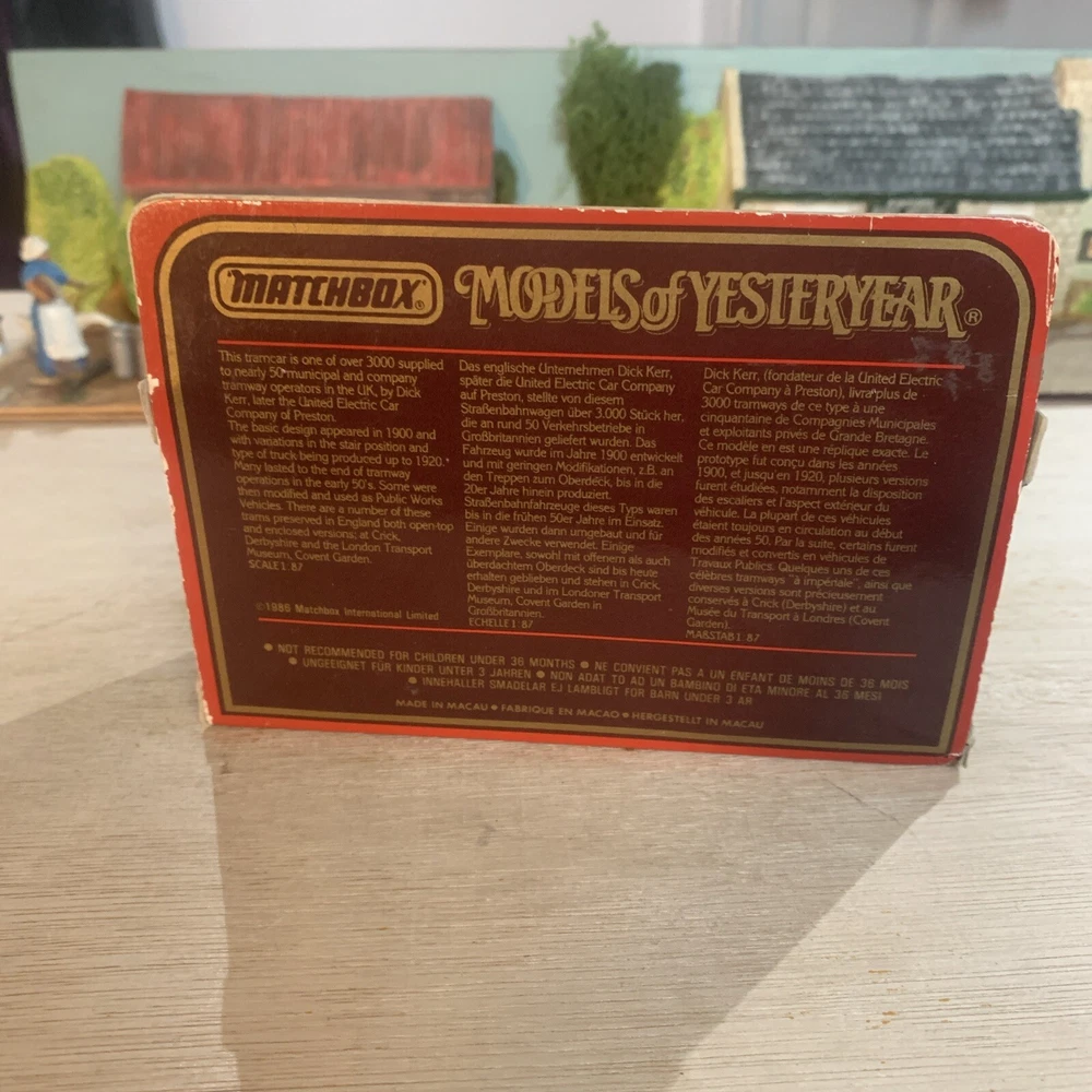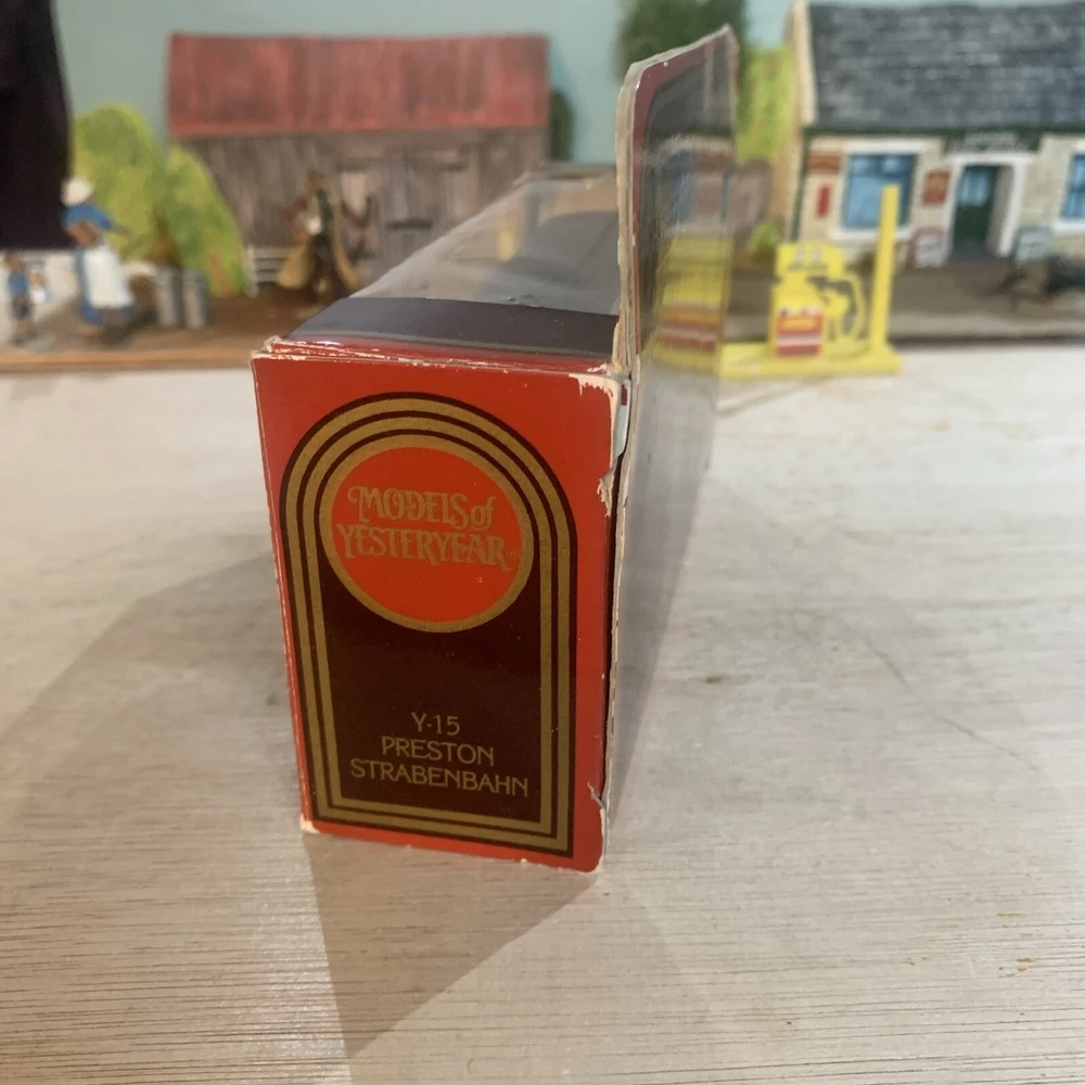 The Matchbox Models of Yesteryear Y-15 Preston Tramcar Swan Vestas Matches is a vintage diecast toy replica of a Preston bus from 1987. This collectible item is part of the Matchbox Models of Yesteryear series, featuring a detailed 1:72 scale model in a multi-coloured design. The toy comes boxed and is a rare find for collectors of vintage diecast vehicles.