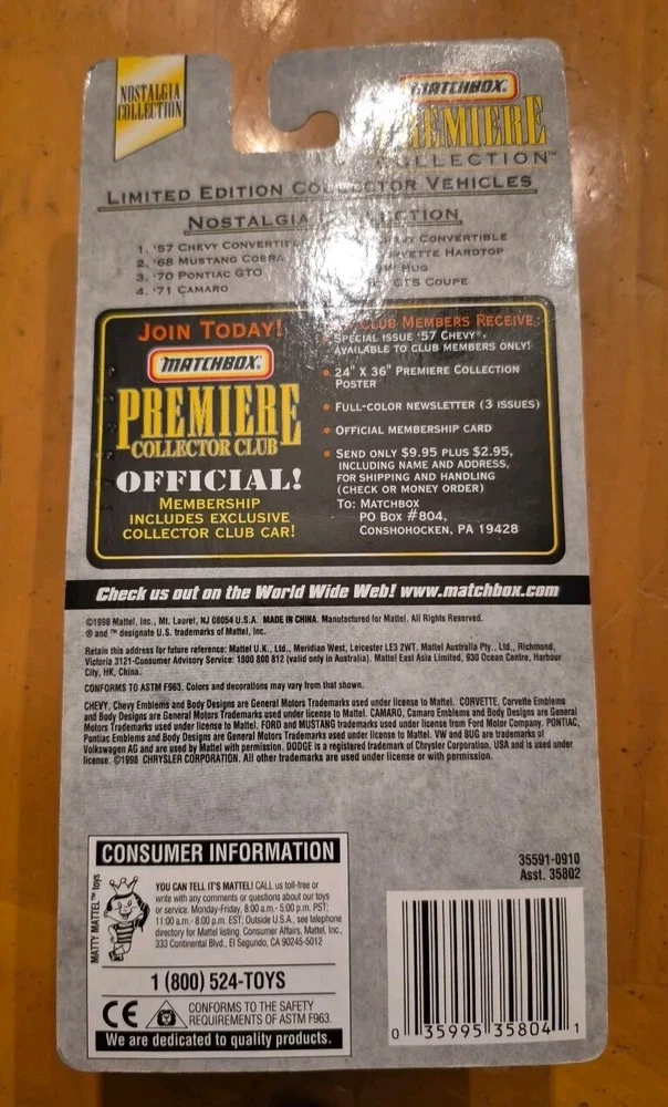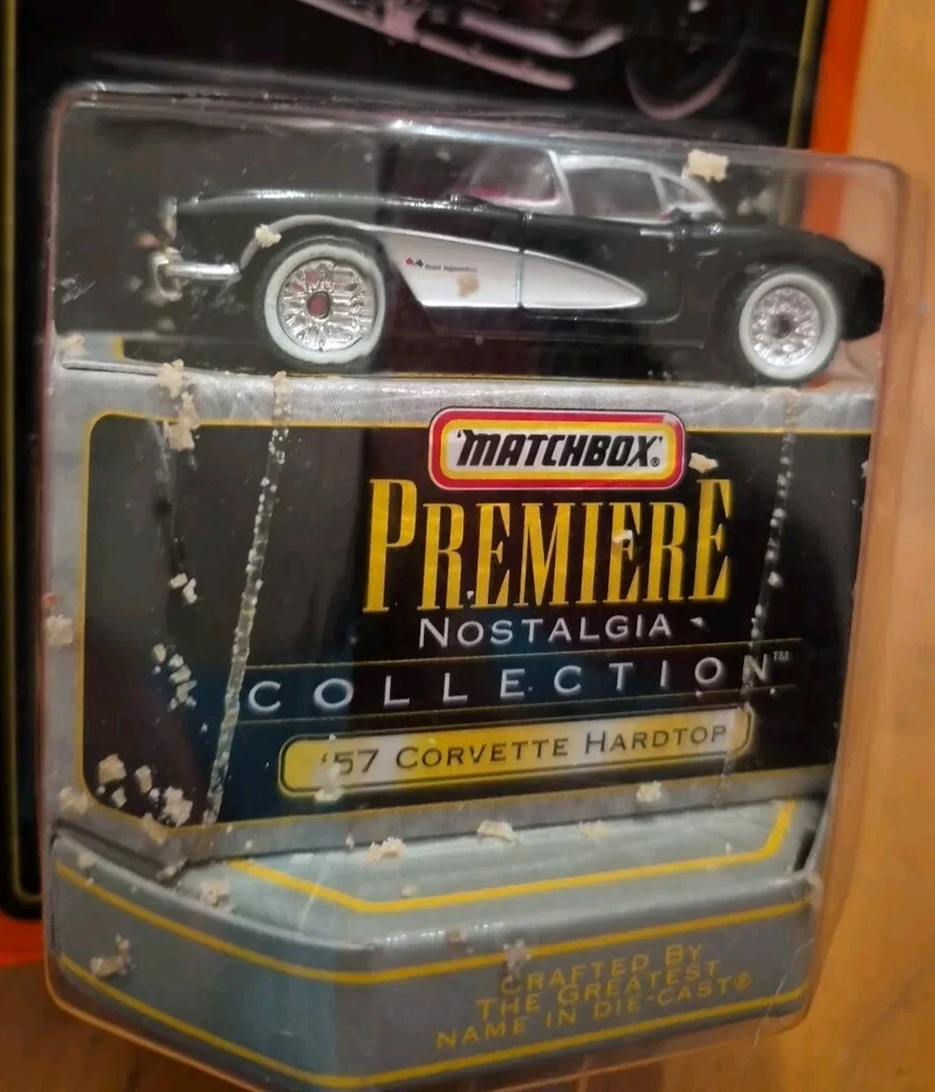 Matchbox Premiere Collection presents a 1:64 scale diecast model of a red 1957 Chevrolet Corvette. This nostalgic piece features a black hardtop and belongs to the Cars character family. The vehicle is part of the Matchbox brand and is still new on card, making it a collectible addition to any diecast and toy vehicle collection.
