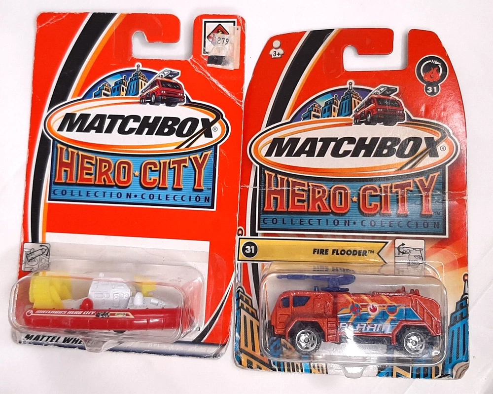 Matchbox Series & Heroes Bundle Lot of 6 Diecast Model Cars & Trucks Good condition with some feathering at corners and a few rough edges; minor creasing and dented plastic: some have price tags that can be removed at your discretion