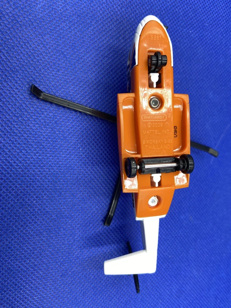 Matchbox Sikorsky S-92 Rescue Helicopter Diecast Model Orange & White 2009 Scale 1:64 / 4.25 inches long. Unboxed. Metal with plastic rotors. This model is in very good condition, with just a few very tiny nicks in the paint. Please see all my photo's for more detail. Will be sent very well packaged Free U.K. returns ** Overseas buyers: I use eBay's Global Shipping Programme for overseas dispatch, and the postage cost for this is set by eBay. They do not offer a combined / reduced postage cost for multiple items bought with the G.S.P. **
