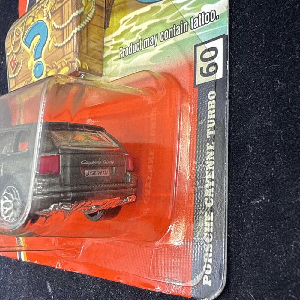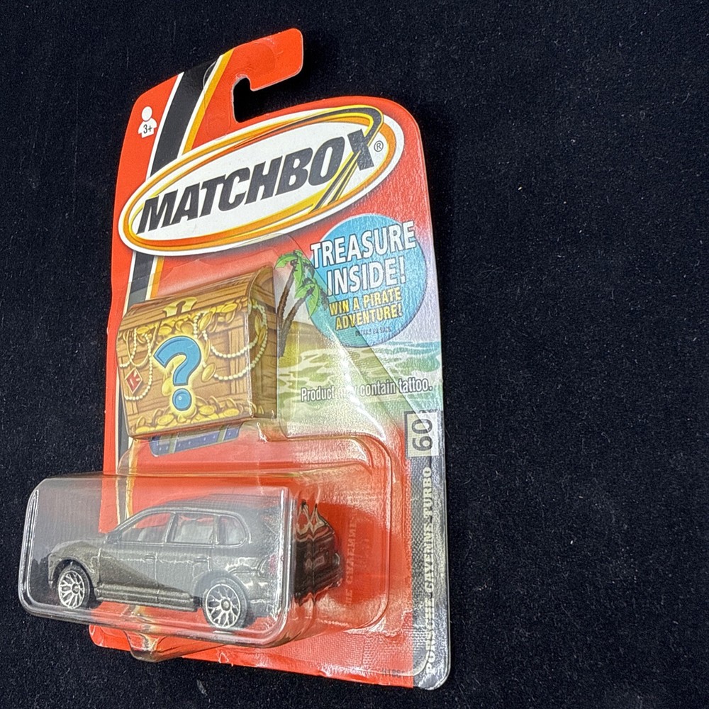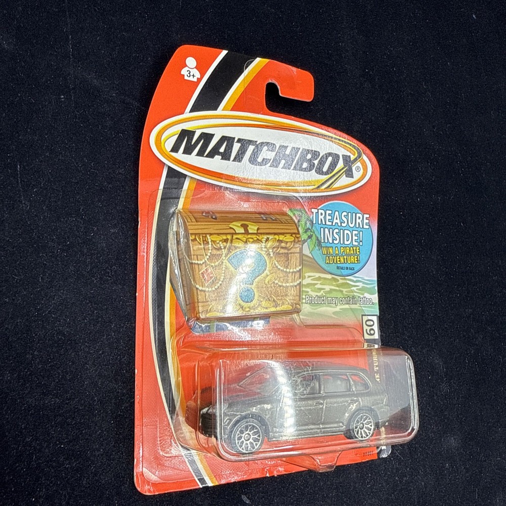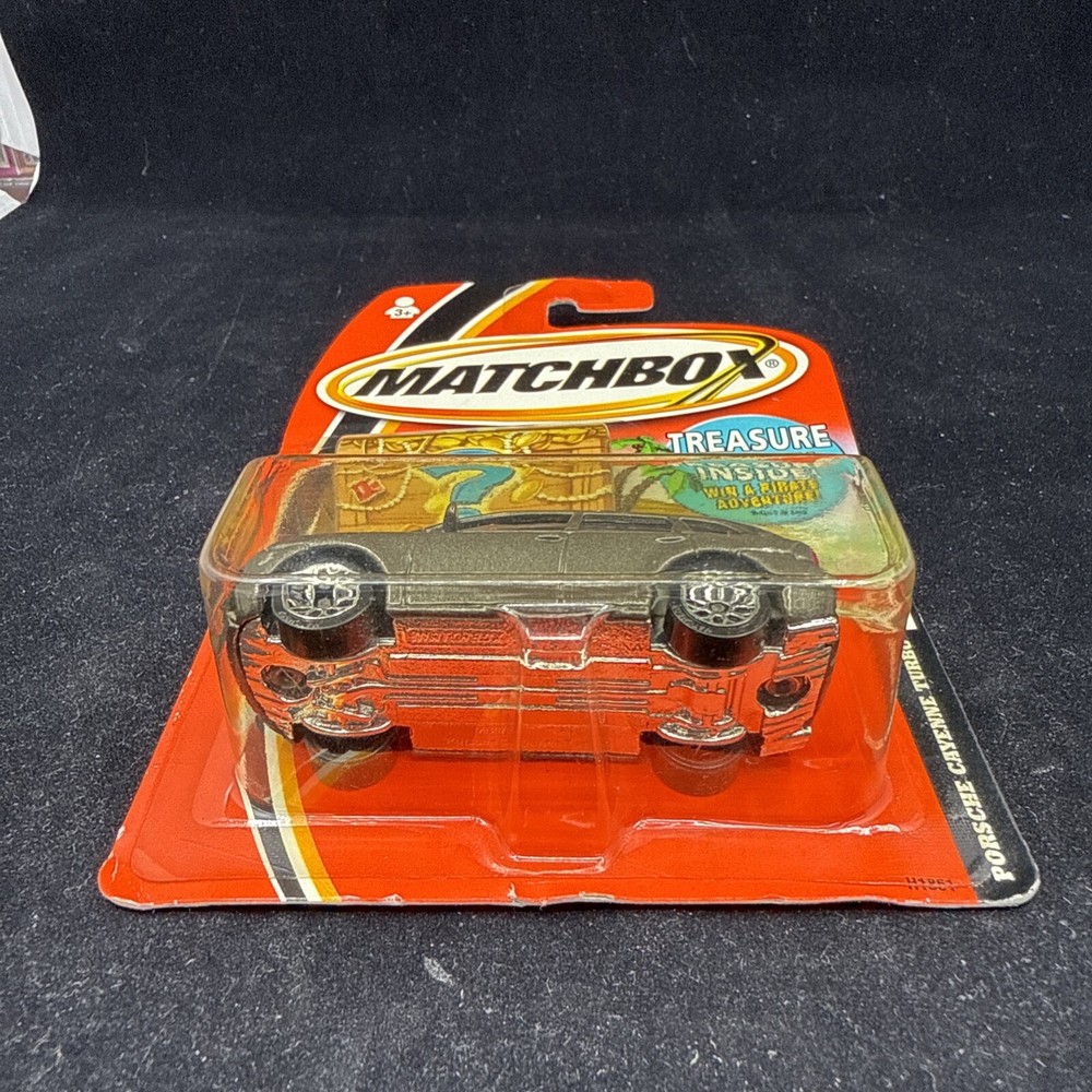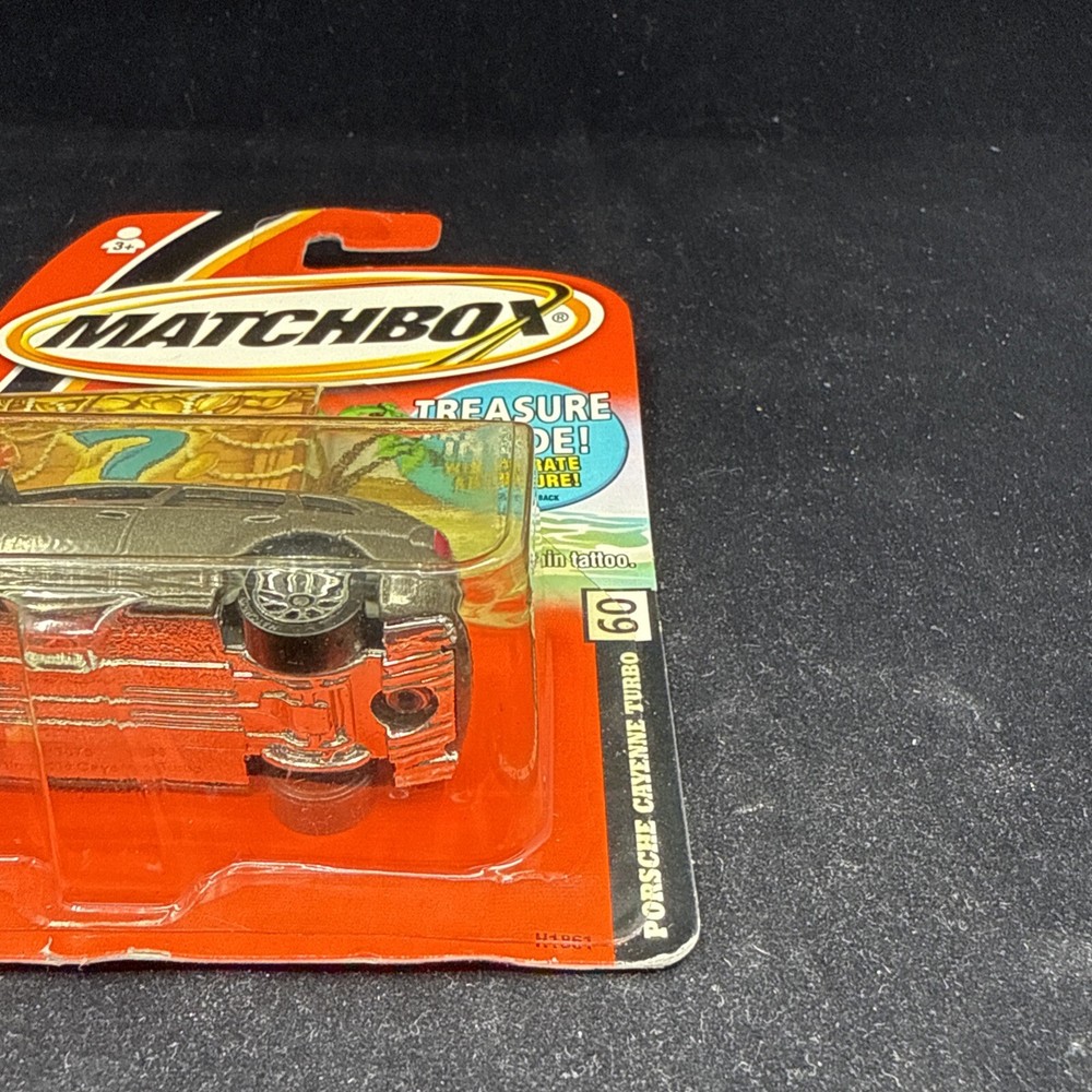Blister has some yellowing, card shows some wear. See photos The Matchbox Treasures Porsche Cayenne Turbo #60 A4 in grey is a 1:64 scale diecast car model released in 2006 as part of the Treasure series by Matchbox. This collectible toy vehicle features a realistic representation of the Porsche Cayenne Turbo, known for its sleek design and high performance. The gray color adds to the authentic look of the model, making it a desirable addition for car enthusiasts and collectors alike.