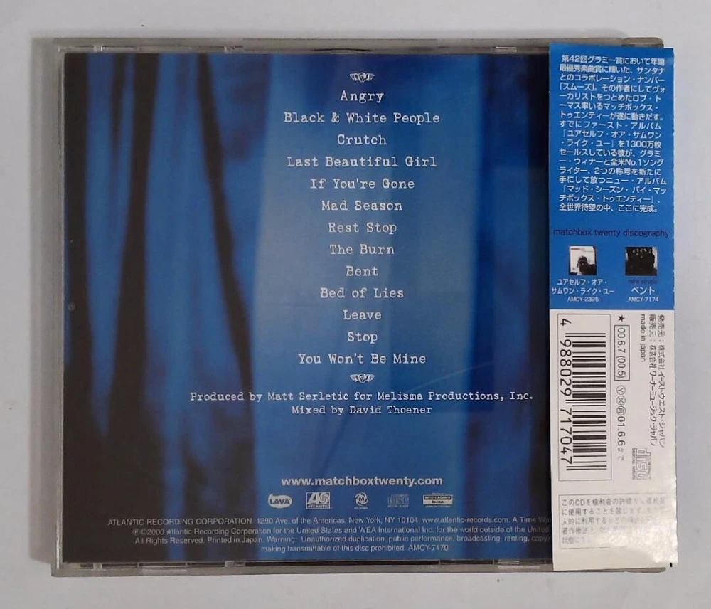 1 Angry 3:44 2 Black & White People 3:45 3 Crutch 3:25 4 Last Beautiful Girl 4:03 5 If You're Gone 4:34 6 Mad Season 5:02 7 Rest Stop 4:29 8 The Burn 3:27 9 Bent 4:16 10 Bed Of Lies 5:22 11 Leave 4:33 12 Stop 3:49 13.1 You Won't Be Mine 7:47 13.2 Untitled 2:07