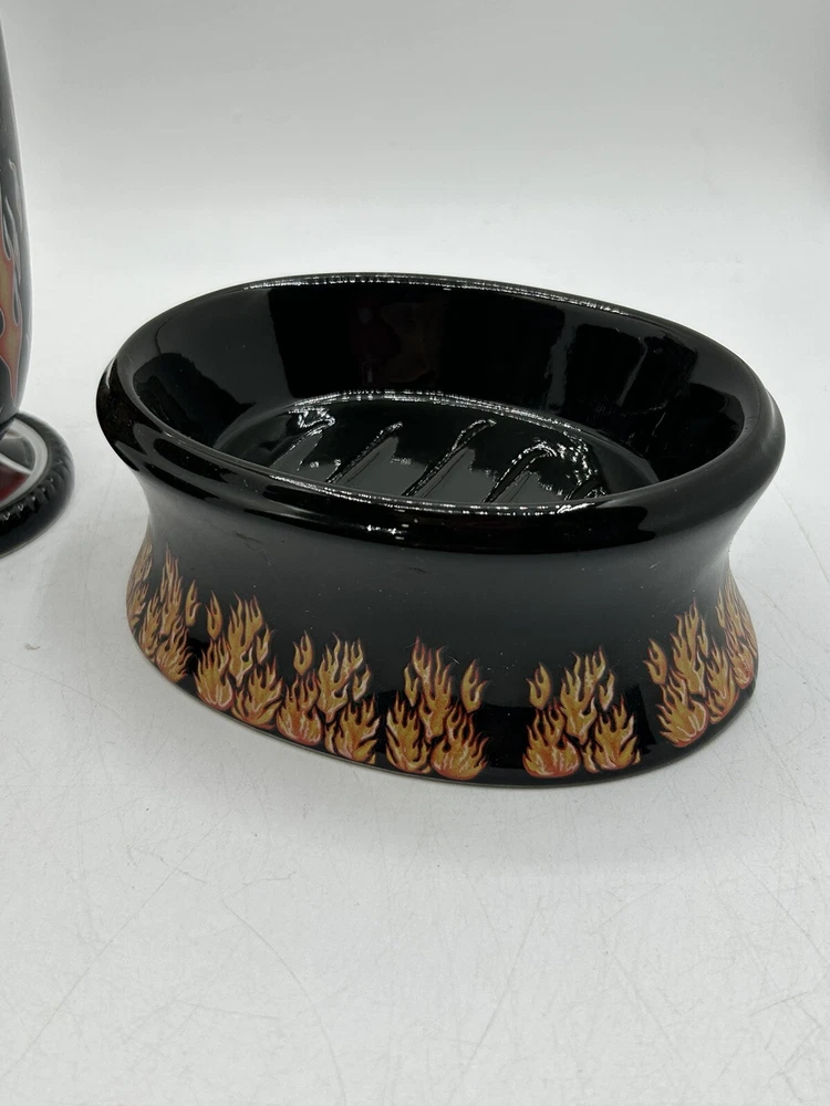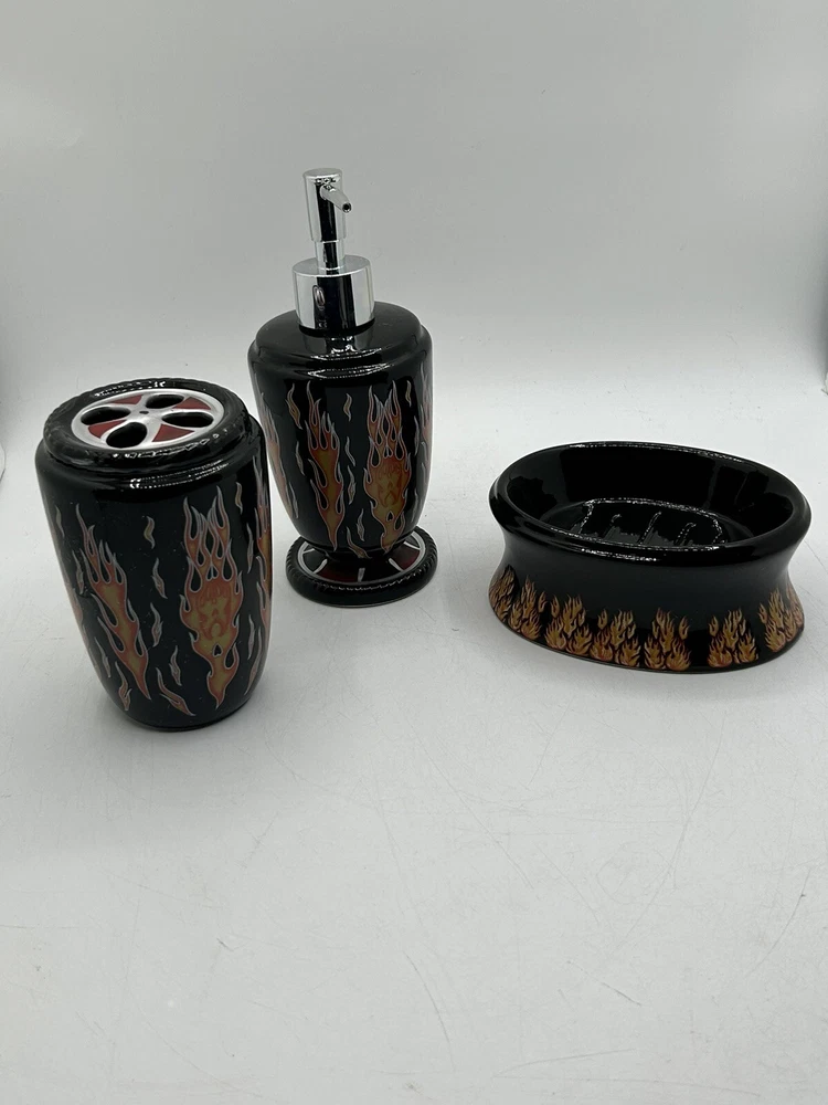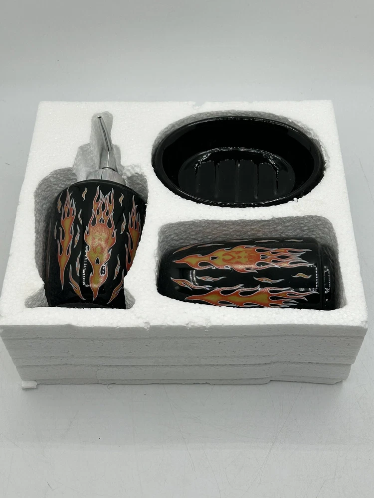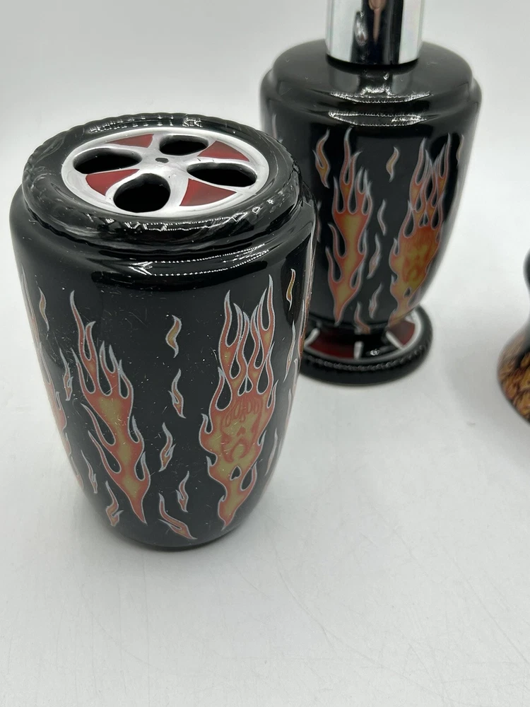 Originally purchased for a friend doing a Harley themed bathroom. Please note the dispenser has a crack on plastic around the cap (shown in last photo) but does not affect functionality.