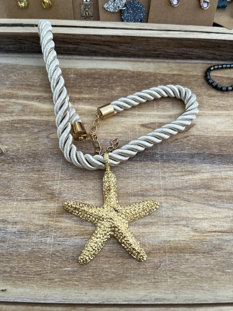 Matching Starfish Sea Star Earring And Necklace Set Gold Nautical Rope