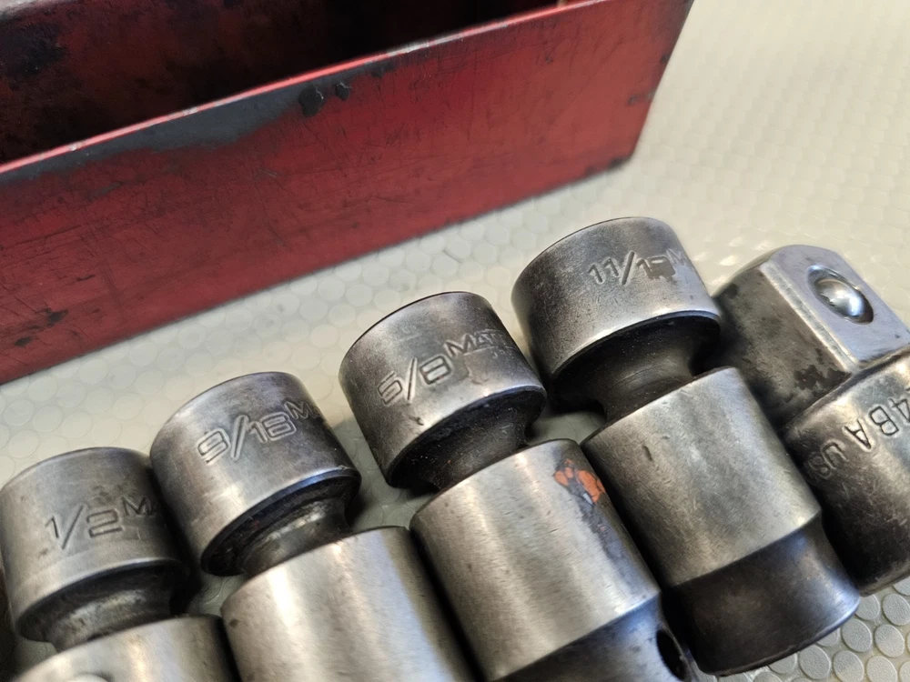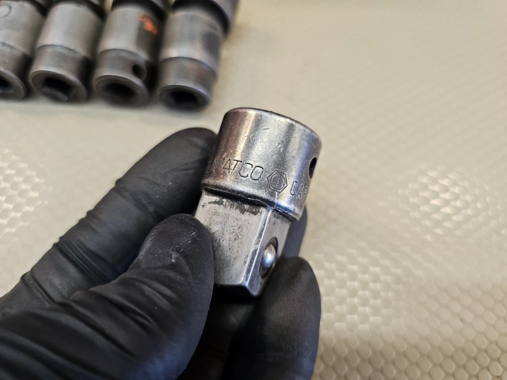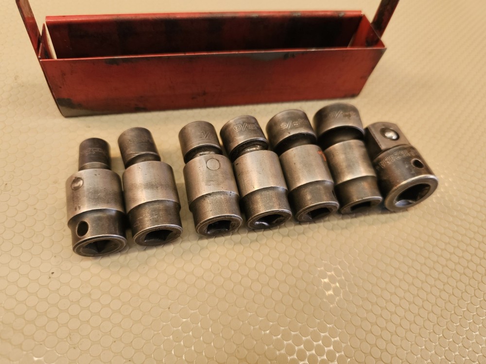 6 matco swivel sockets and 1 matco 1/2 to 3/8 adapter.
