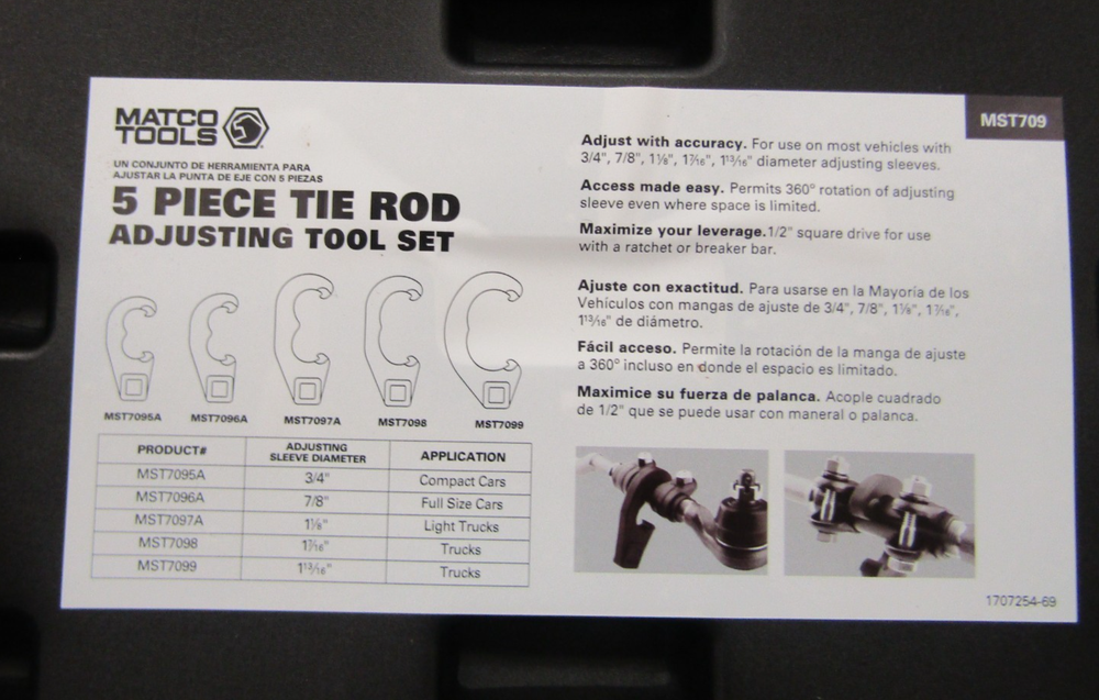 Matco Tools MST709 5-Piece Tie Rod Adjusting Tool Set in good condition as pictured