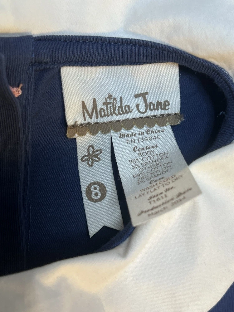 Matilda Jane Best Friends Collar T Shirt Girls Size 8 Blue And White great condition measurements are in photos SKU(A677-H4)