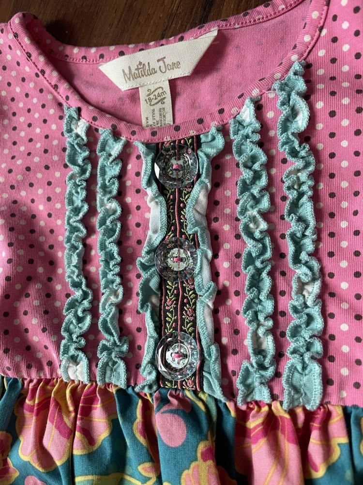 $ 8.72Jelly the Pug Allison Dress Girls 2T Longsleeve Button Up Floral Colorful Bow