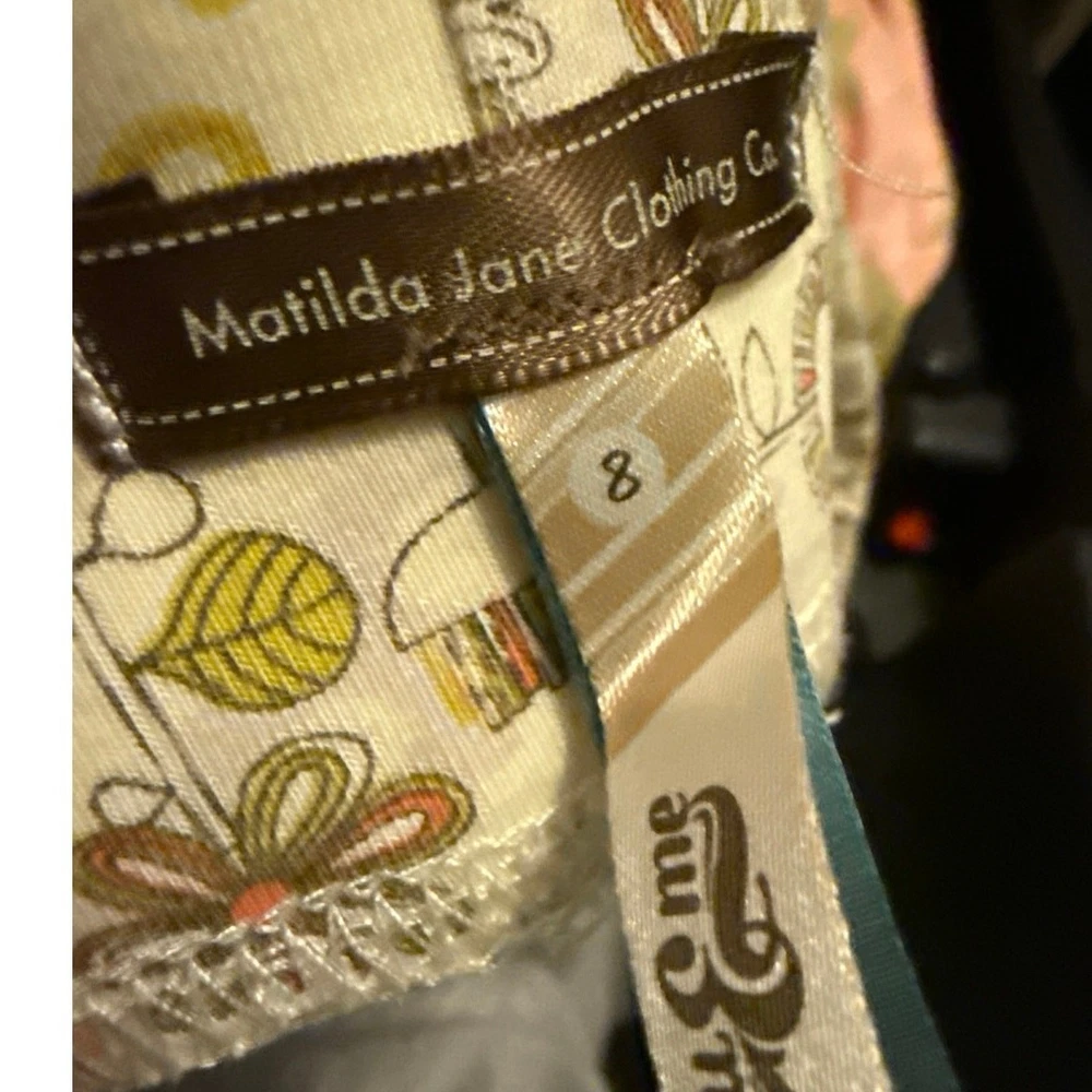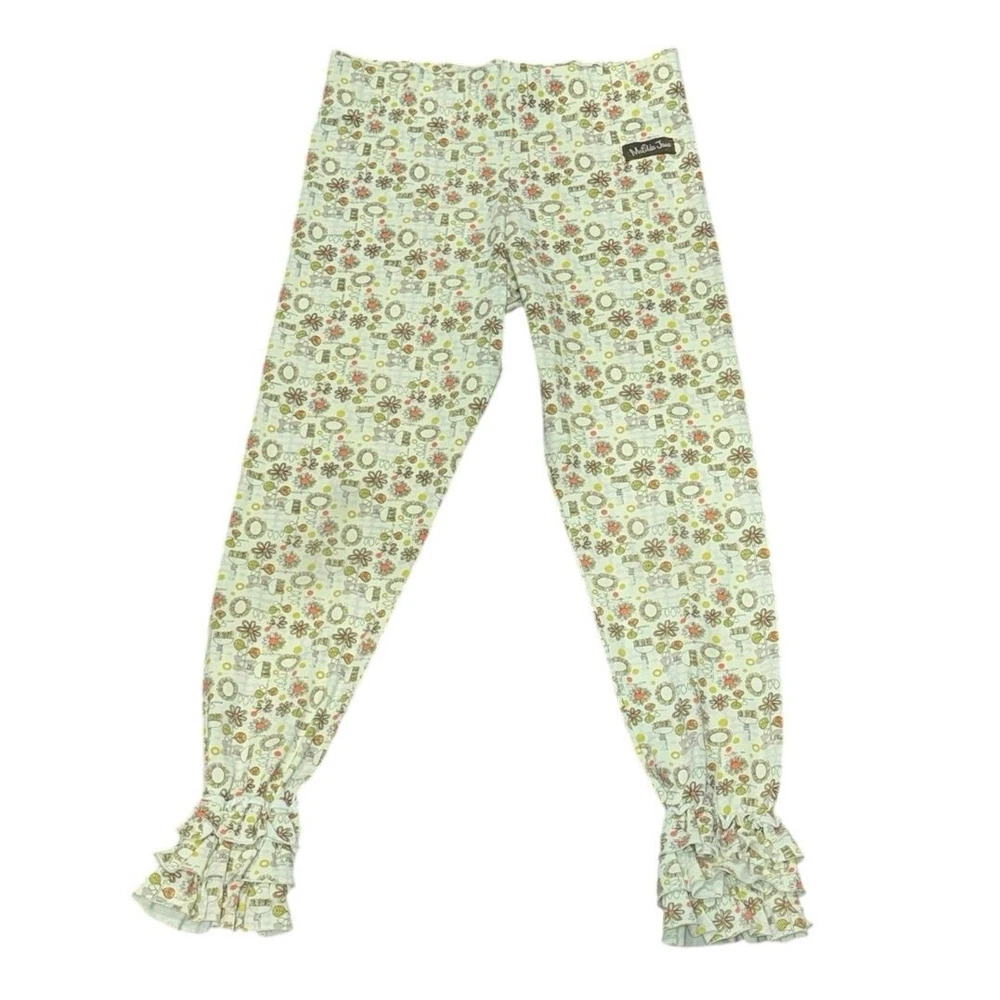 Add a touch of whimsy to your little one’s wardrobe with these adorable Matilda Jane You & Me Minny leggings from the Fall 2011 collection. These vintage girls’ leggings feature a charming floral pattern with sweet ruffle cuffs at the ankles—perfect for playful days, school outfits, or family photos. Details: • Brand: Matilda Jane • Collection: You & Me (Fall 2011) • Style: Minny Leggings • Size: 8 • Material: Soft cotton blend (tag removed) • Color: Cream/ivory base with multicolor floral pattern • Features: Ruffle cuffs, pull-on style, allover floral print • Condition: Good used condition (GUC) – Normal wash wear from age, no holes or stains These classic Matilda Jane leggings are a must-have for collectors or anyone who loves unique, boutique children’s clothing.
