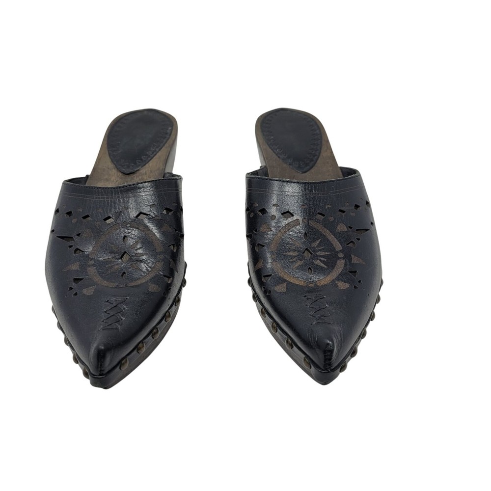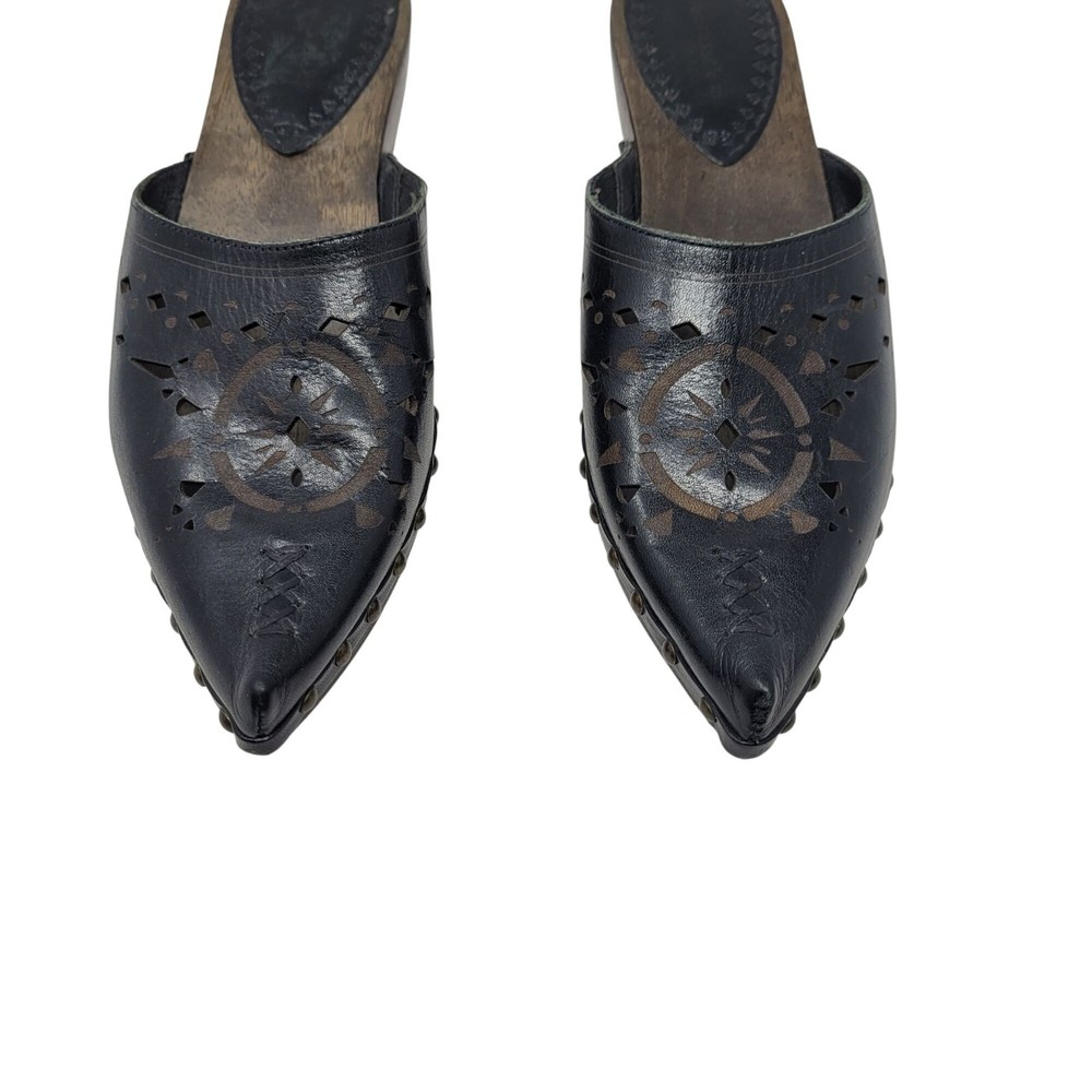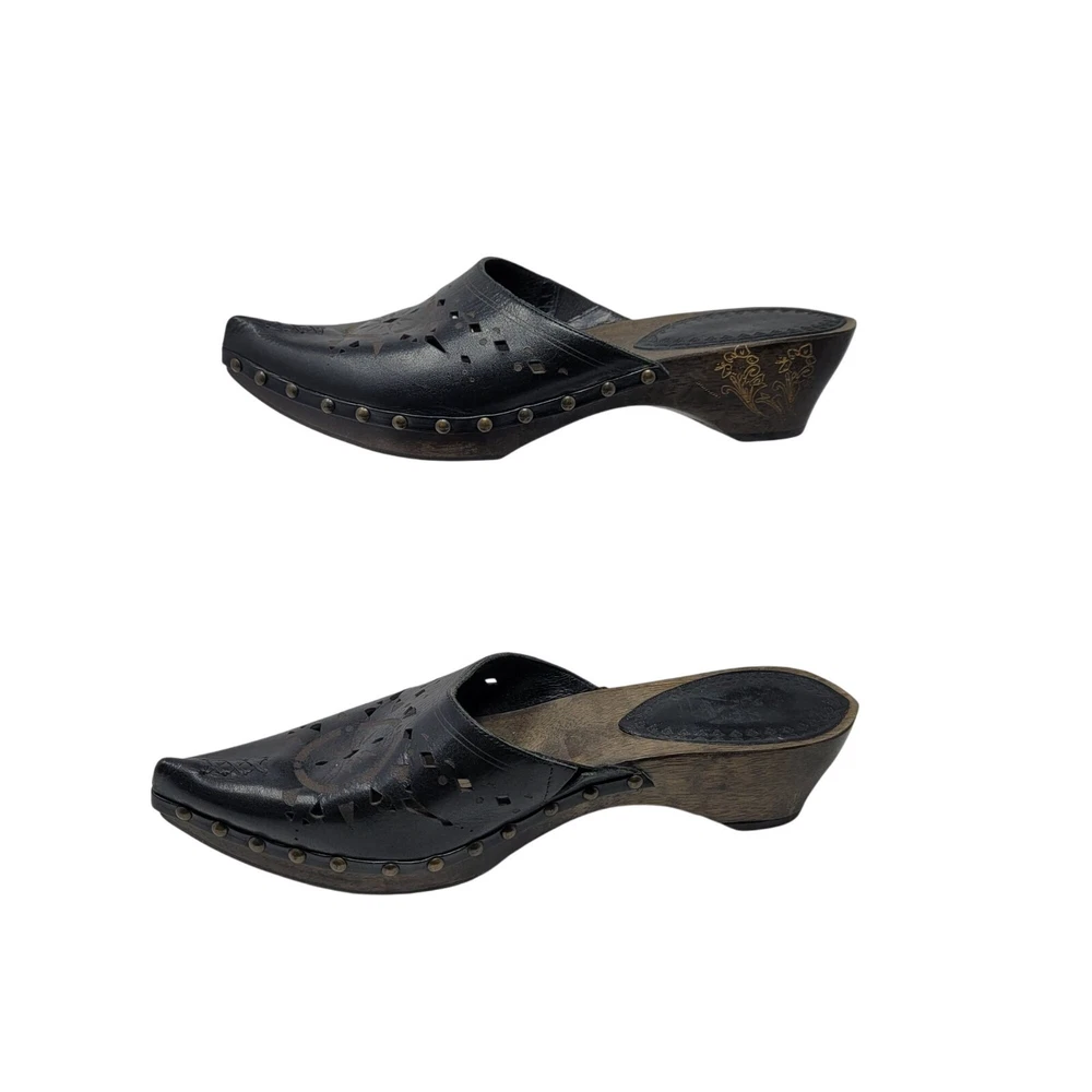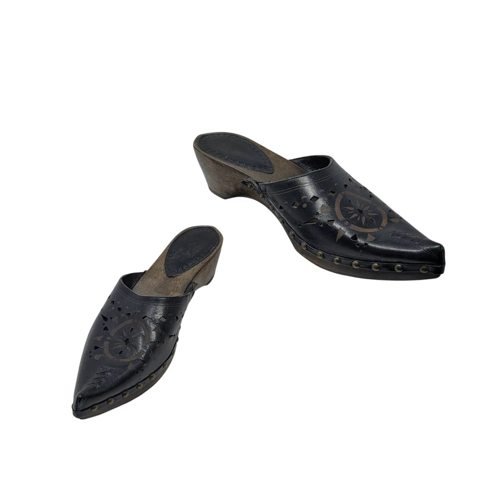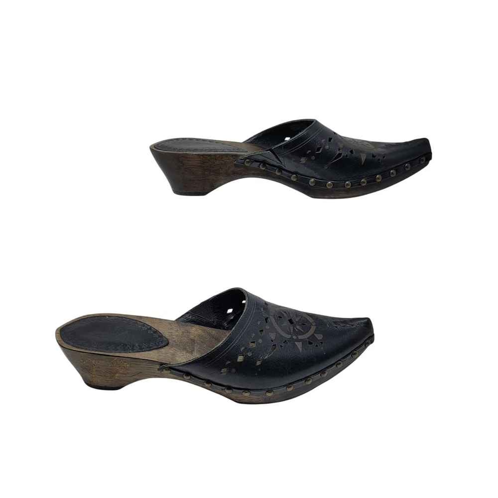 Elevate your style with these handcrafted mules. Featuring a leather upper, intricate cutout design, and durable wooden heel, they exude both charm and craftsmanship. • Leather upper with intricate cutout pattern • Slip-on design for easy wear • Wooden heel offers durability and elegance • Made in Brazil with quality craftsmanship Gently pre loved no noted flaws Size 8 Thank you for supporting my small business! Top Seller on multiple platforms and next day shipper. Bundle and save. Western Cowgirl Festival Leather