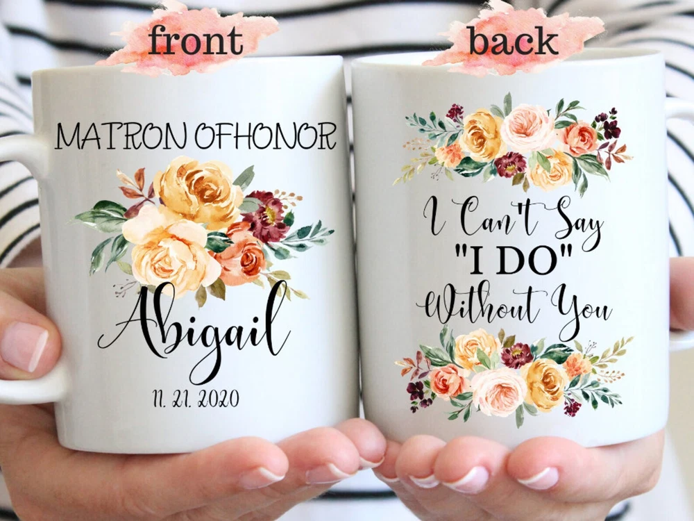 Matron Of Honor Mug Matron Of Honor Proposal Best Friends Wedding Gift Product Details.. This high quality 11oz. ceramic white mug has a premium hard coat that provides crisp and vibrant color reproduction sure to last for years. Perfect for all hot & cold beverages. The highest quality printing possible is used. It will never fade no matter how many times you wash it. Material: 100% Ceramic. Print both sides. Dishwasher and Microwave Safe. High Gloss + Premium White Finish. Printed in the U.S.A. Personalized & Custom. We support personalized and custom mug to add custom, when placing an order, you can add notes to the "order note" in shipping address section. Also you can contact us directly via message. Shipping Info. Ready to ship in 1 to 2 business days, All products are made-to-order and proudly printed in the United States. Shipped by USPS and DHL, You will receive your order in 5-7 days. Replace & Refund. All products are defective during shipping broken, chipped will be replaced free of charge. You are not satisfied with the product, we will refund 100% money to you. If any other issues arise, please do not hesitate to message, we would be more than happy to assist you.
