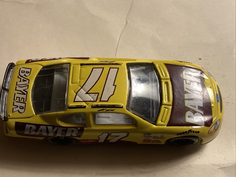 This diecast #17 MATT KENSETH Bayer 1:64 NASCAR Stock Car Racing 2000 Team Caliber is a must-have for NASCAR fans and car collectors alike. This yellow Ford NASCAR car is made of high-quality diecast material and features a 1:64 scale. The car is part of the Nascar race series and is recommended for children ages 3 and up. The car is from the Roush Racing team and is perfect for display or play. It is not autographed, but it does come from the iconic NASCAR driver Matt Kenseth. This diecast car is a great addition to any collection and is sure to impress fans of the sport.