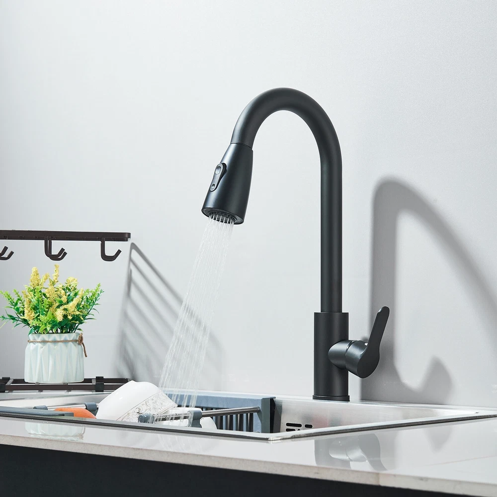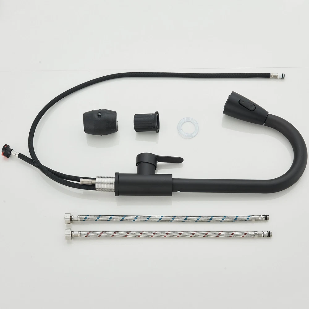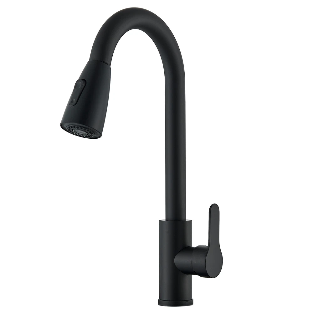 Matte Black Kitchen Sink Faucet Pull Out Sprayer Single Hole For RV Farmhouse
