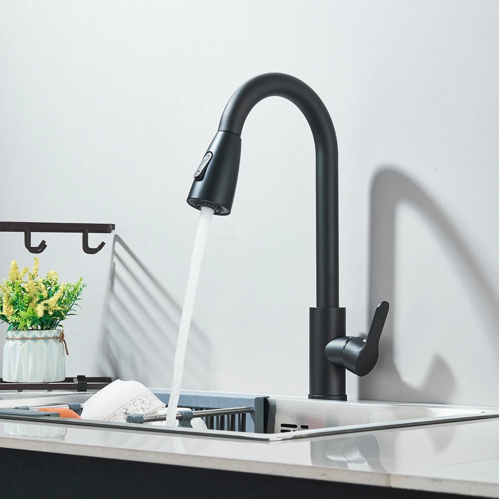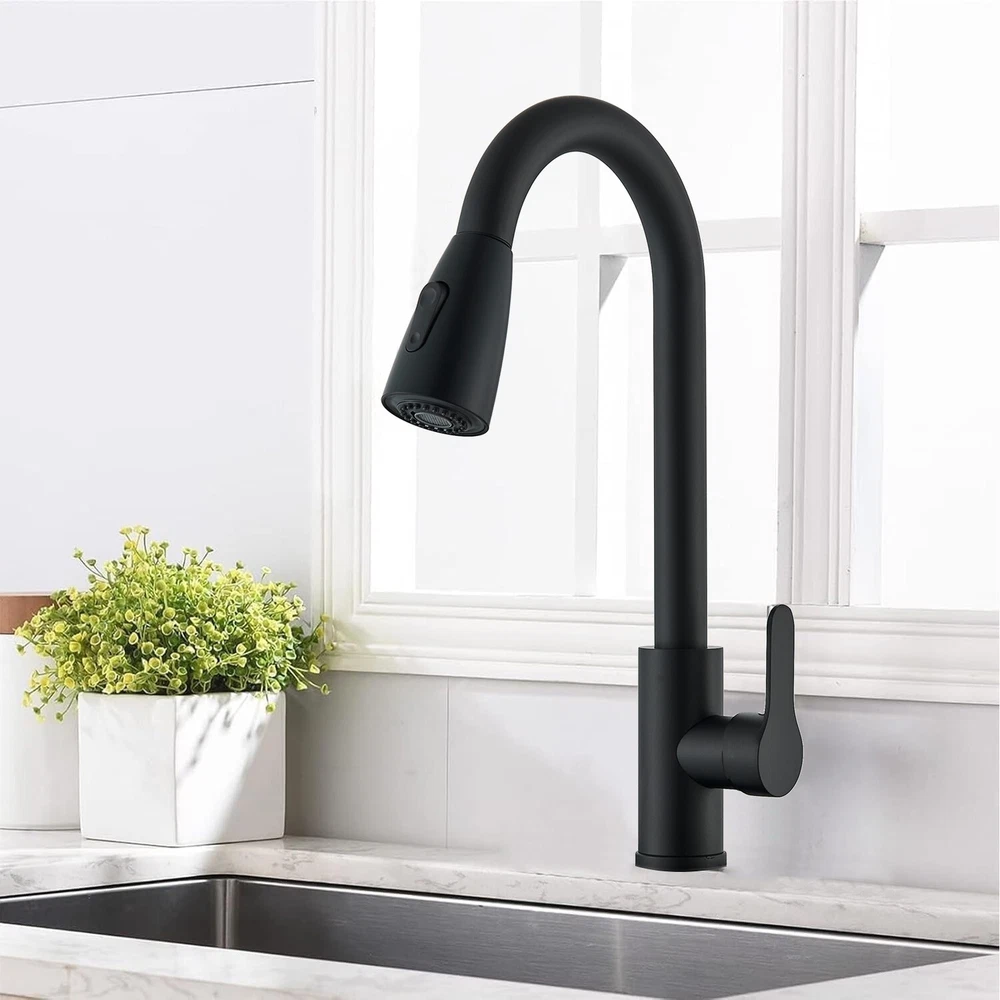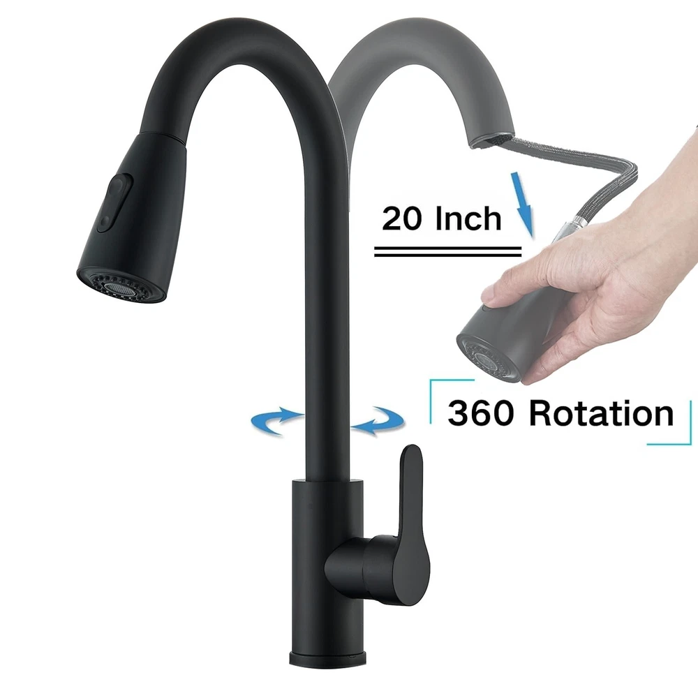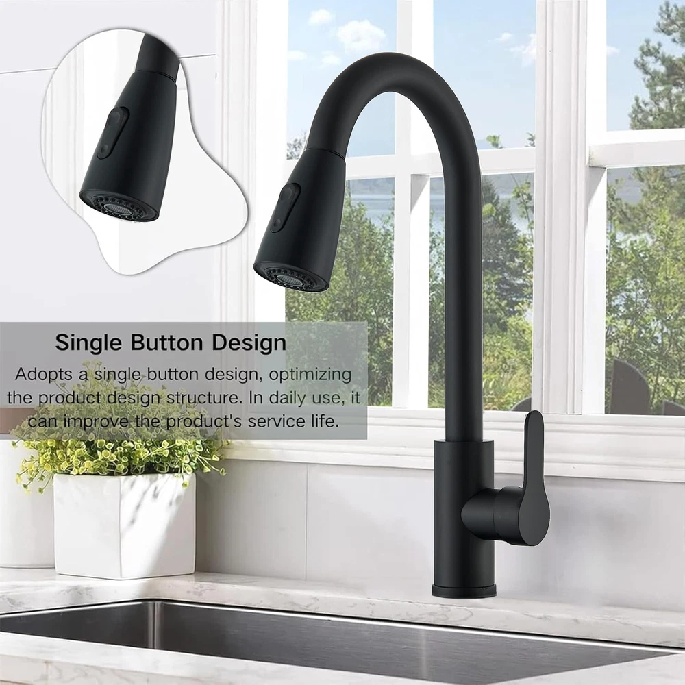 Matte Black Kitchen Sink Faucet Pull Out Sprayer Single Hole For RV Farmhouse