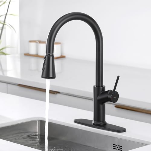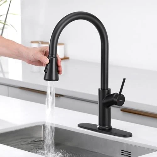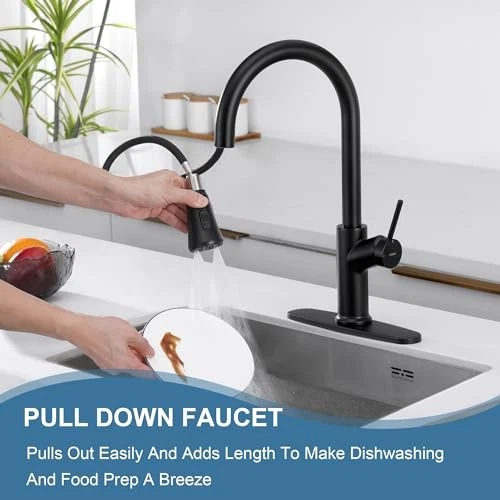 Matte Black Pull-Down Kitchen Faucet with Upgraded Sprayer