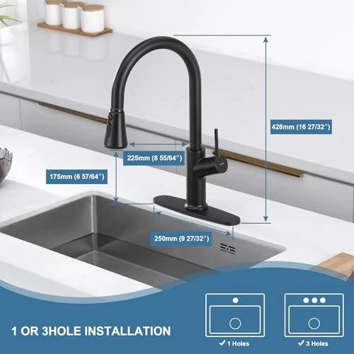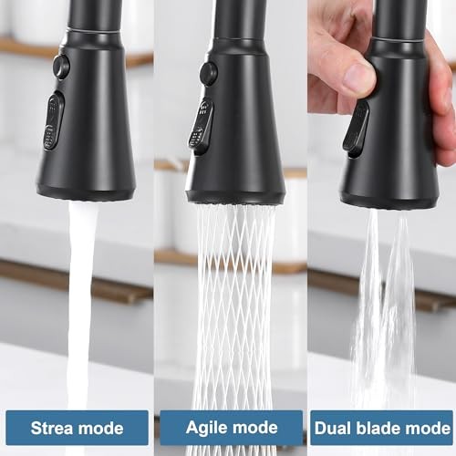 Warranty Type: limited Date First Available: April 27, 2023 Item Weight: 4.94 pounds Handle Location: single-hole-deck-mount MPN: Does Not Apply Customer Reviews: 4.8 out of 5 stars Material: Stainless Steel Recommended Uses For Product: Kitchen EAN: Does Not Apply Special Features: Easy to Install, Water Saving, Pull Down Spray Batteries Included: No Handle Type: Lever Finish: black UPC: Does Not Apply Manufacturer: Shenzhen Bacui Kitchen and Bathroom Technology Co., Ltd Brand: Does Not Apply Item Width: 11 Item Height: 3.1 Item Length: 23 Is Electric: No Spout Height: 3.9 Inches Batteries Required: No Color: Matte Black(Upgrade) Finish Type: black Spout Design: Pull-Down gtin13: Does Not Apply Handle Material: Stainless Steel Type: Does Not Apply Number of Handles: 1 Included Components: Sprayer, Deck Plate, Handle Product Dimensions: 23 x 11 x 3.1 inches Special Feature: Easy to Install, Water Saving, Pull Down Spray Style: Three-Function Upgrade Installation Type: single_hole_deck_mount, Single Hole Mounting Type: Deck Mount