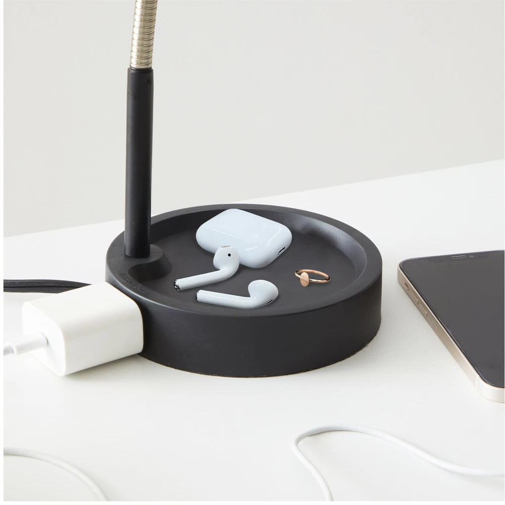 Provides ample lighting for desks and bedside tables Catch-all base provides convenient storage for small items Integrated AC outlet allows for convenient device charging Integrated LED bulb lasts up to 12,000 hours for energy-efficient use On/off switch is integrated on the shade for easy access Metal gooseneck allows for flexible and easy adjustment Made from durable for long-lasting use Max height of 14.5" H x 5.52" W makes it a perfect fit for most workspaces Easy to assemble and use, with no tools required Sleek design adds a modern touch to any workspace Introducing the LED Desk Lamp with Catch-All Base and AC Outlet - The perfect lighting solution for any workspace! This lamp is designed to provide ample lighting while also serving as a convenient storage space for all your small desk items. Measuring at 14.5" H x 5.52" W at it's maximum height, this lamp is perfect for use on desks or beside tables. The integrated LED bulb lasts up to 12,000 hours, making it long-lasting and energy-efficient lighting solution. The on/off switch is integrated on the shade for easy use, allowing you to quickly and conveniently turn the light on and off as needed. The lamp is crafted from durable and features a metal gooseneck for flexibility and easy adjustment. The catch-all base is perfect for storing small items such as headphones, paper clips and more, keeping your workspace clean and organized. Plus, the integrated AC outlet allows you to conveniently charge your electronic devices while at work. Whether you're working late into the night or need a reliable source of lighting for your daily tasks, the LED Desk Lamp with Catch-All Base and AC Outlet is the perfect solution.