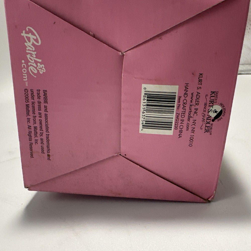 Year Manufactured:2005Brand:MattelMPN:Kurt S. AdlerColor:PinkType:Barbie Christmas TreeHandmade:YesTime Period Manufactured:2000-2009Occasion:ChristmasMaterial:Mixed Materials